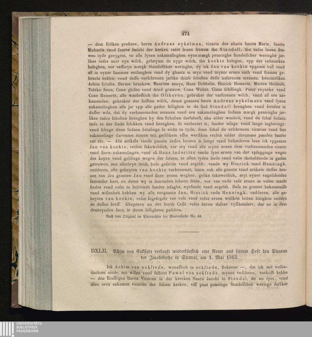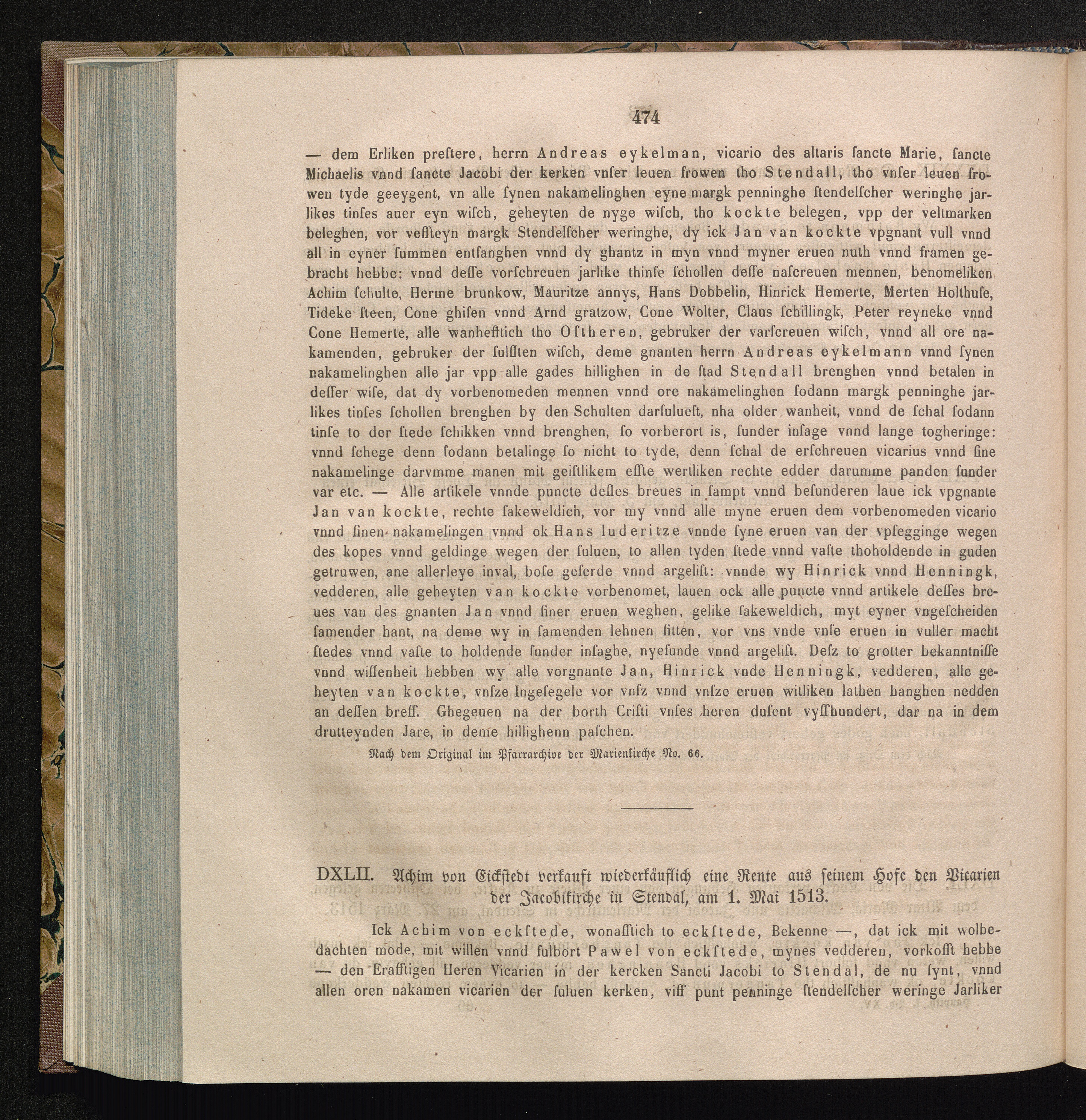 DXLII. Achim von Eickstedt verkauft wiederkäuflich eine Rente aus seinem Hofe den[...]