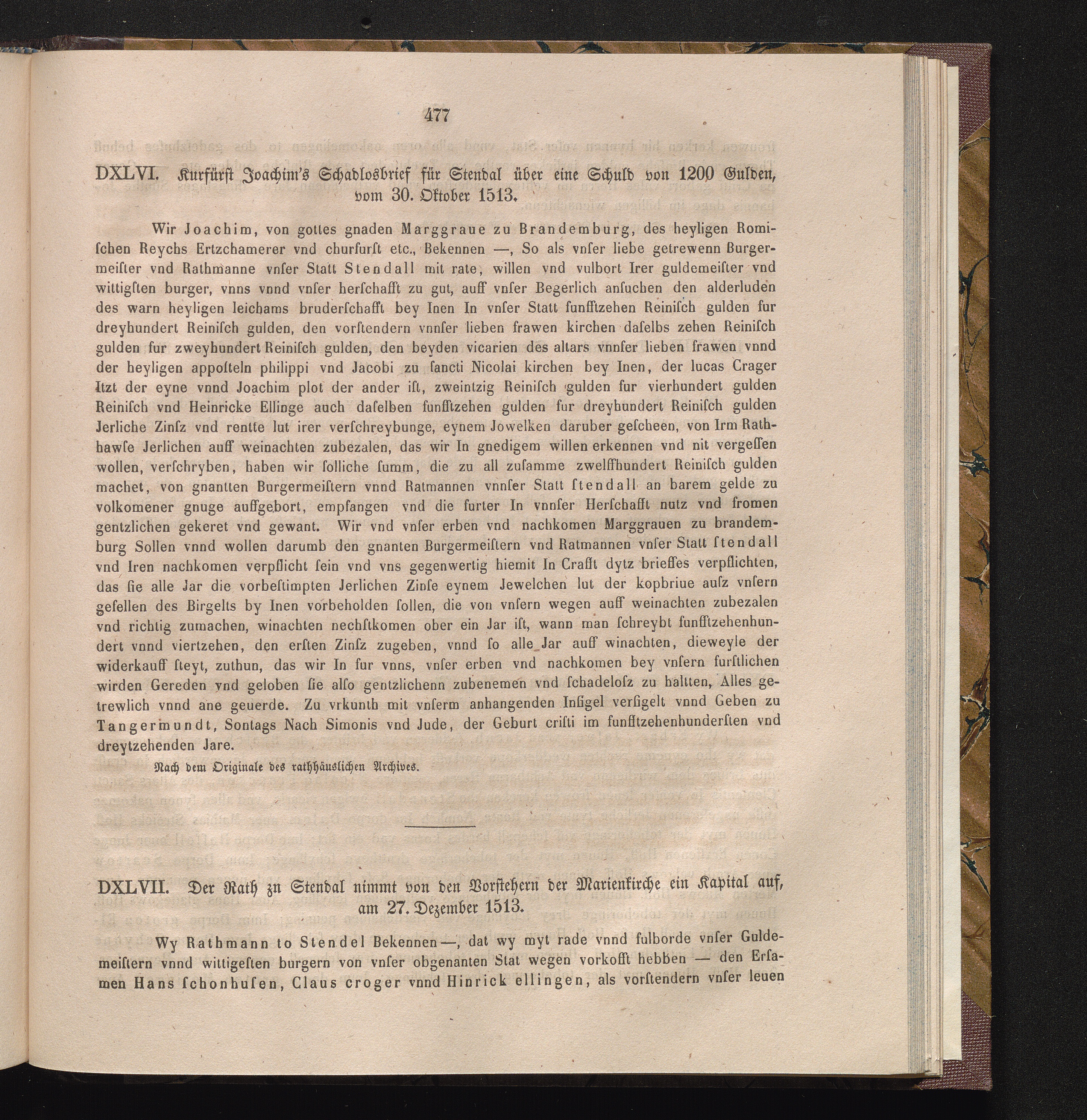 DXLVII. Der Rath zu Stendal nimmt von den Vorstehern der Marienkirche ein Kapital[...]