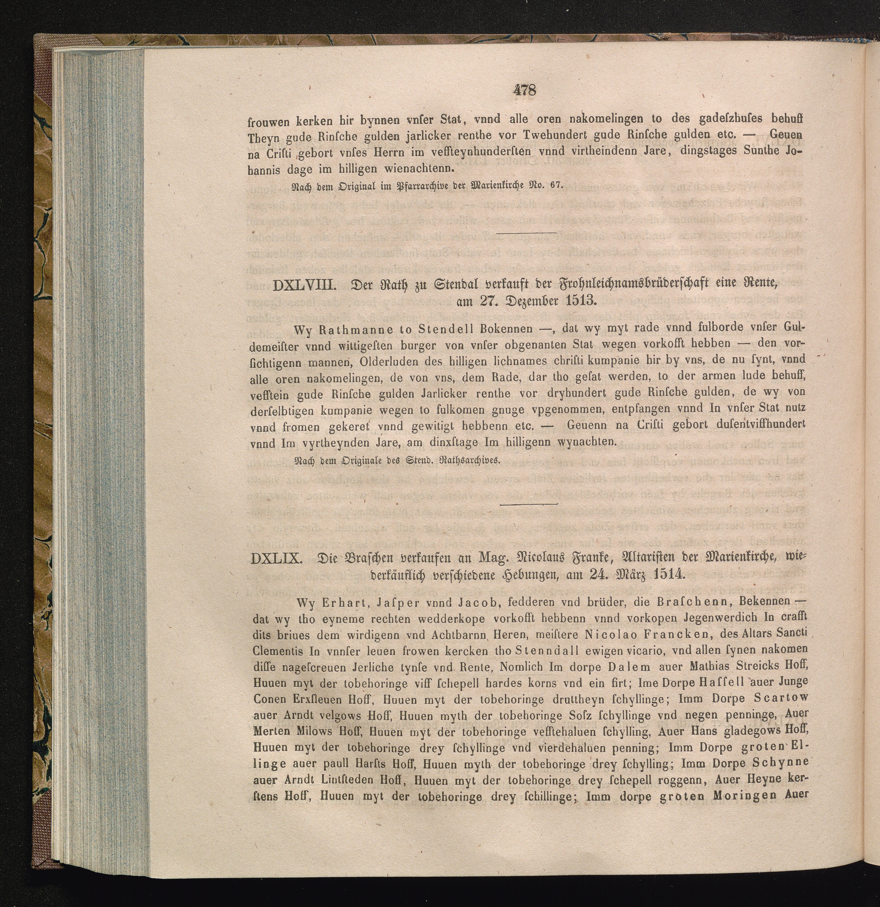 DXLIX. Die Braschen verkaufen an Mag. Nicolaus Franke, Altaristen der Marienkirche,[...]