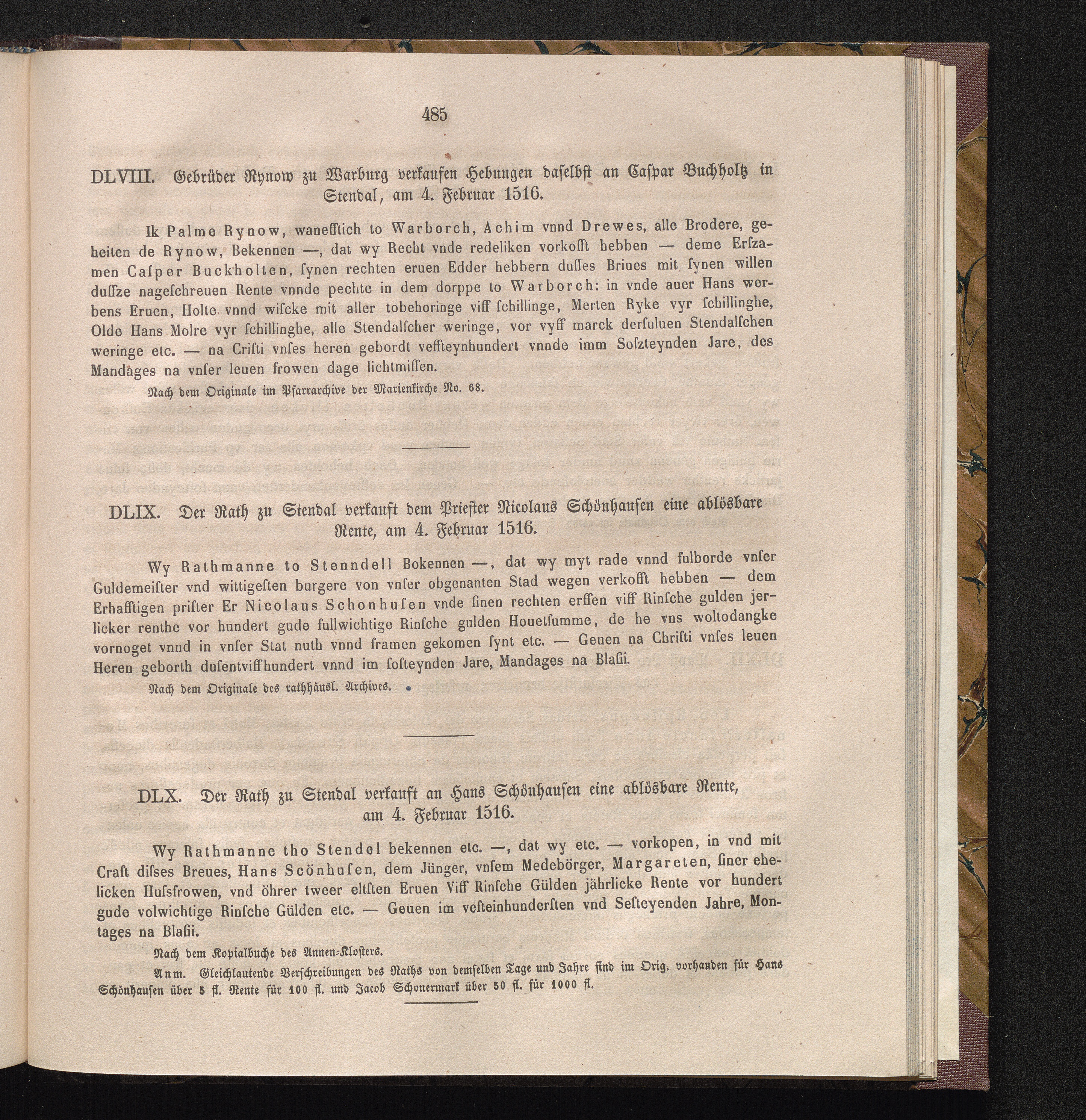DLX. Der Rath zu Stendal verkauft an Hans Schönhausen eine ablösbare Rente, am 4.[...]