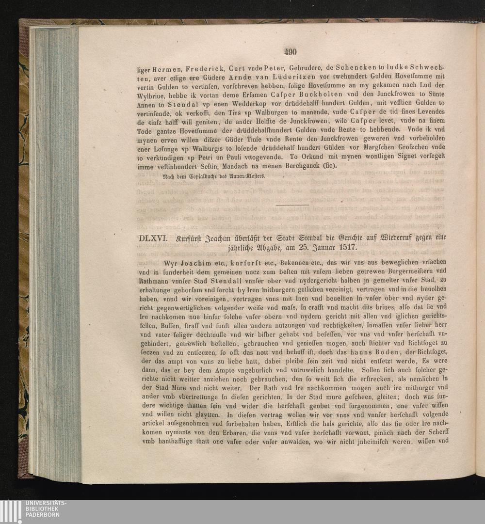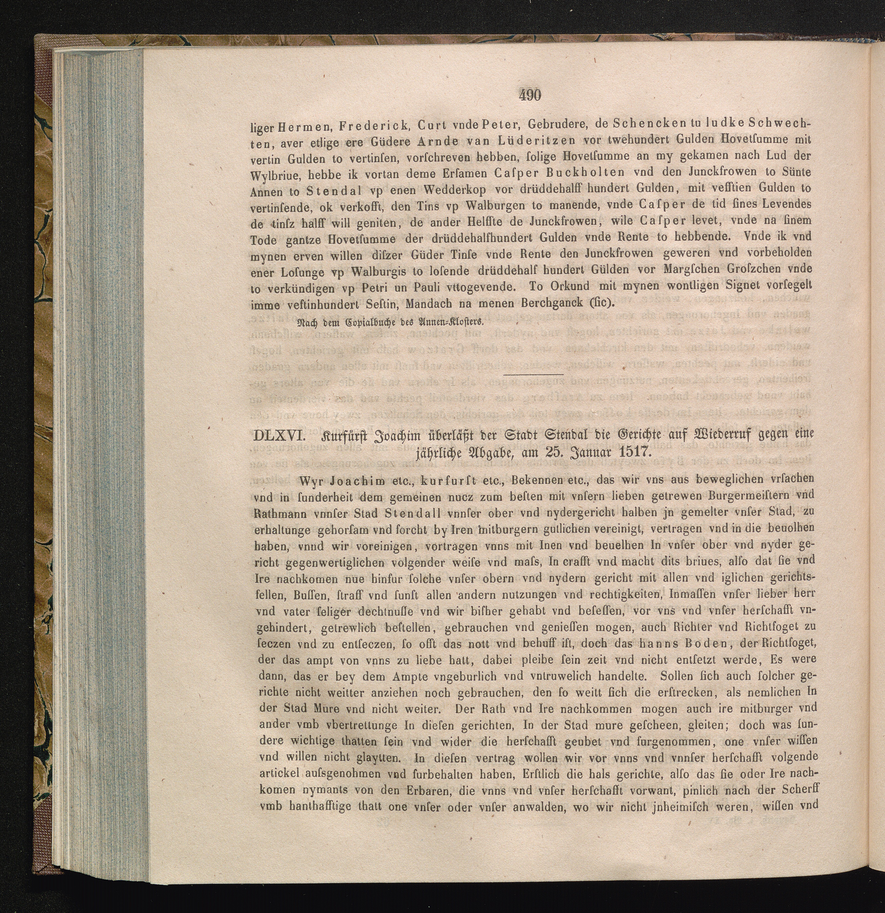 DLXVI. Kurfürst Joachim überläßt der Stadt Stendal die Gerichte auf Wiederruf gegen[...]