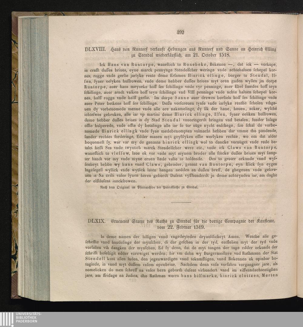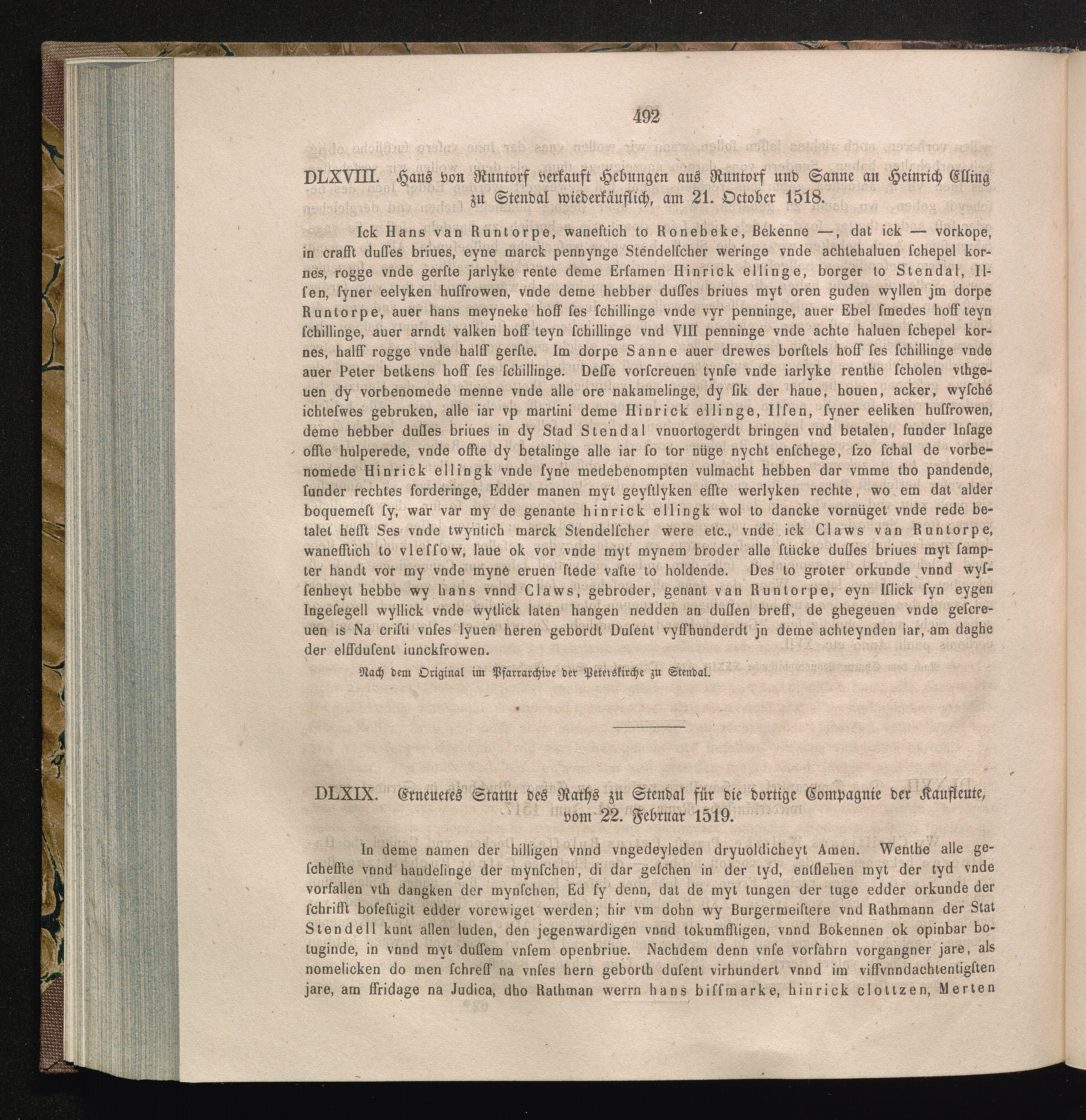 DLXIX. Erneutes Statut des Raths zu Stendal für die dortige Compagnie der Kaufleute,[...]