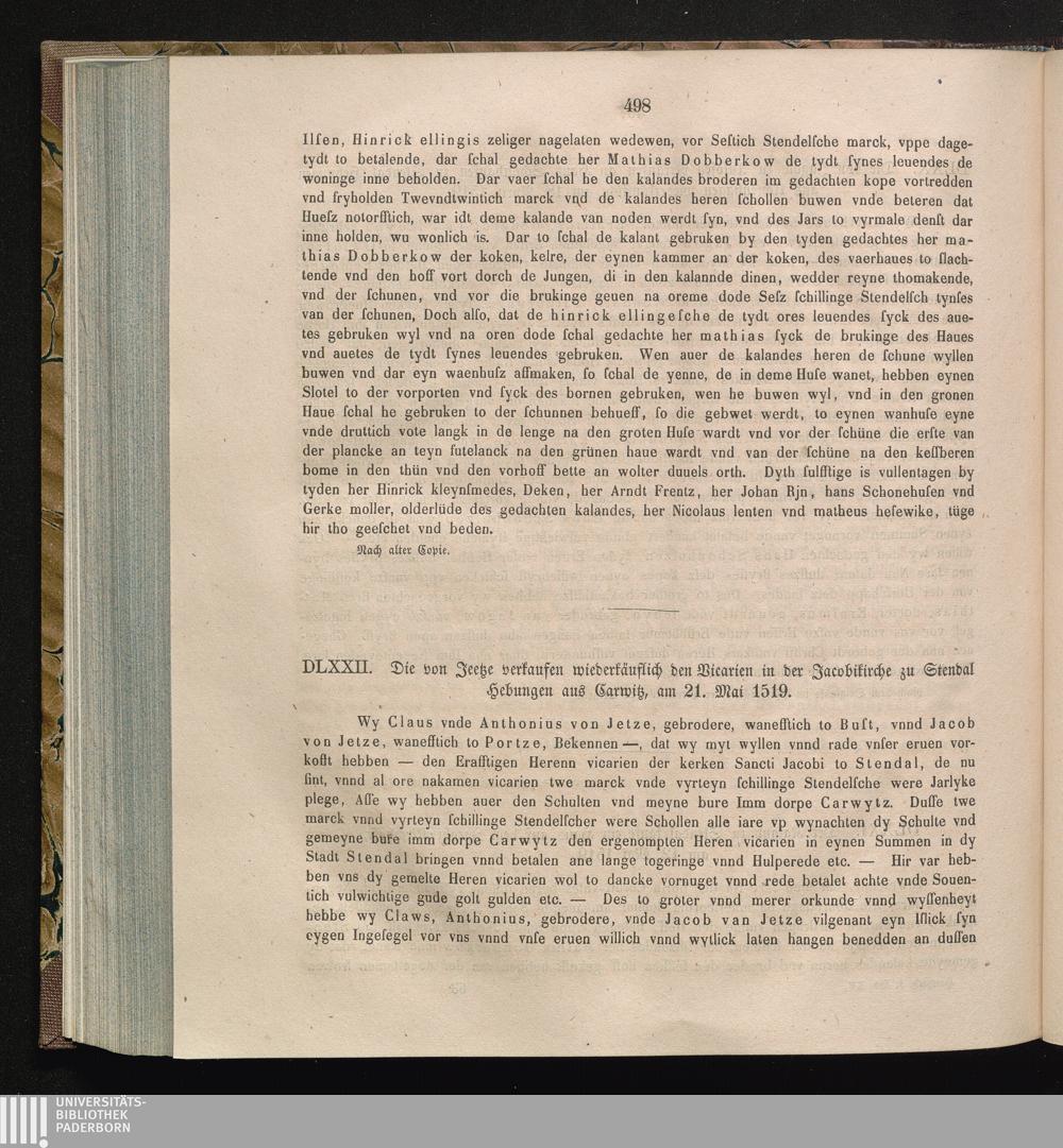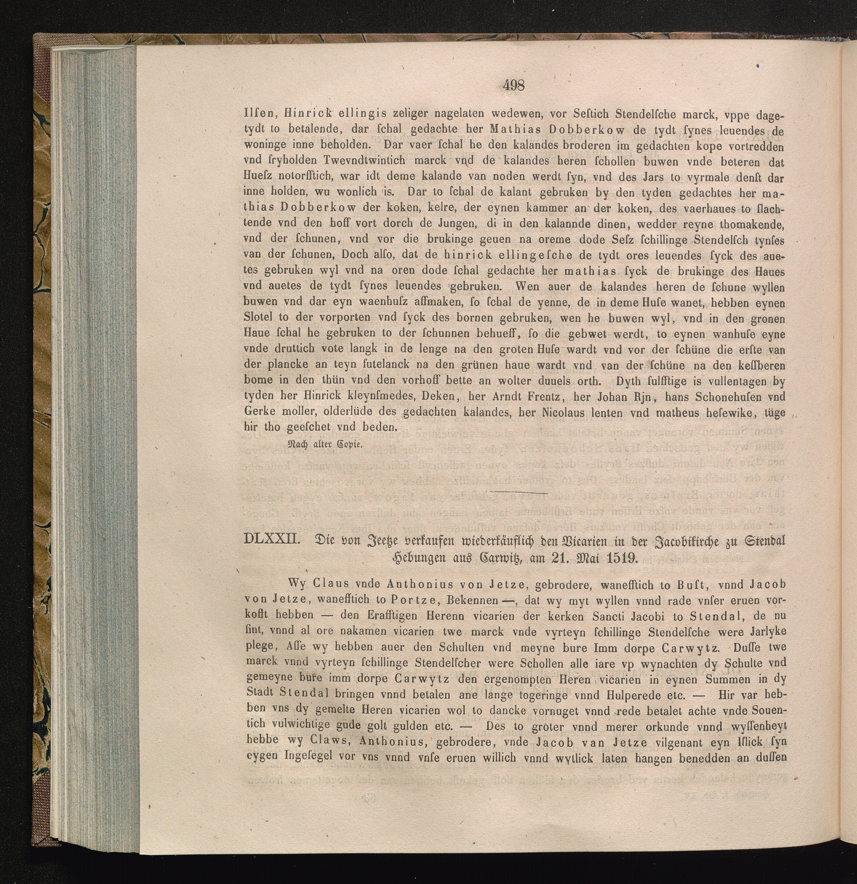 DLXXII. Die von Jeetze verkaufen wiederkäuflich den Vicarien in der Jacobikirche[...]