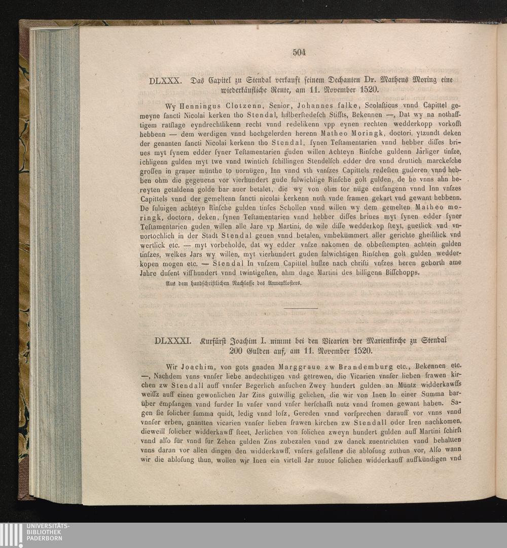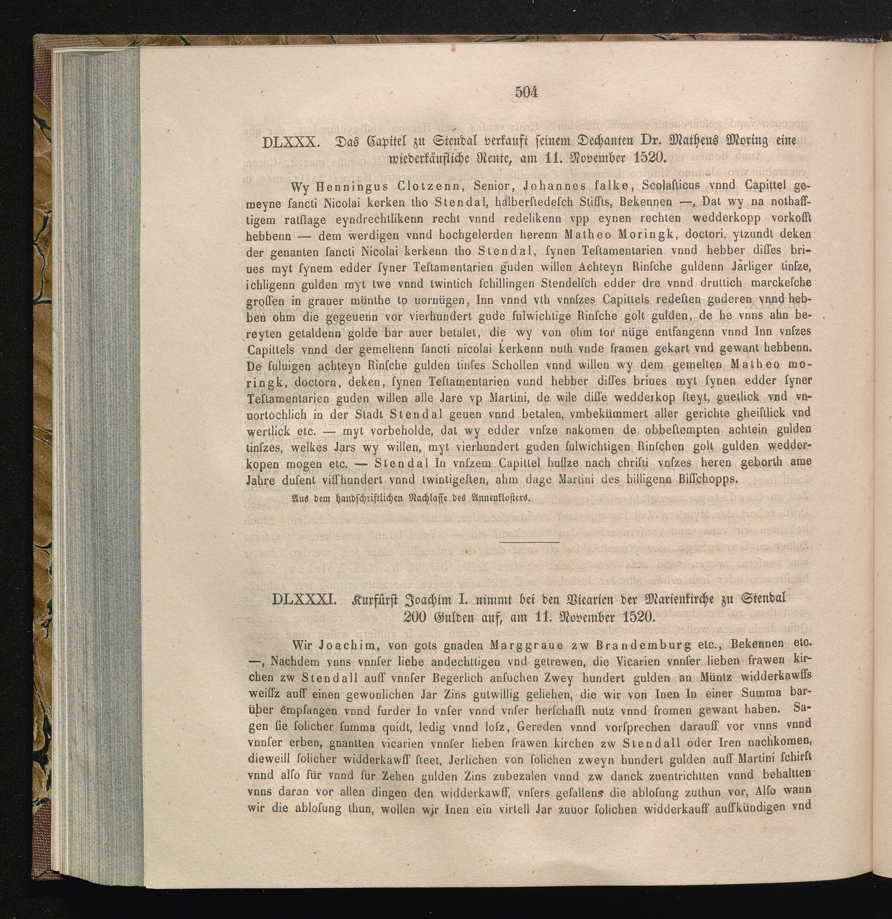 DLXXXI. Kurfürst Joachim I. nimmt bei den Vicarien der Marienkirche zu Stendal 200[...]