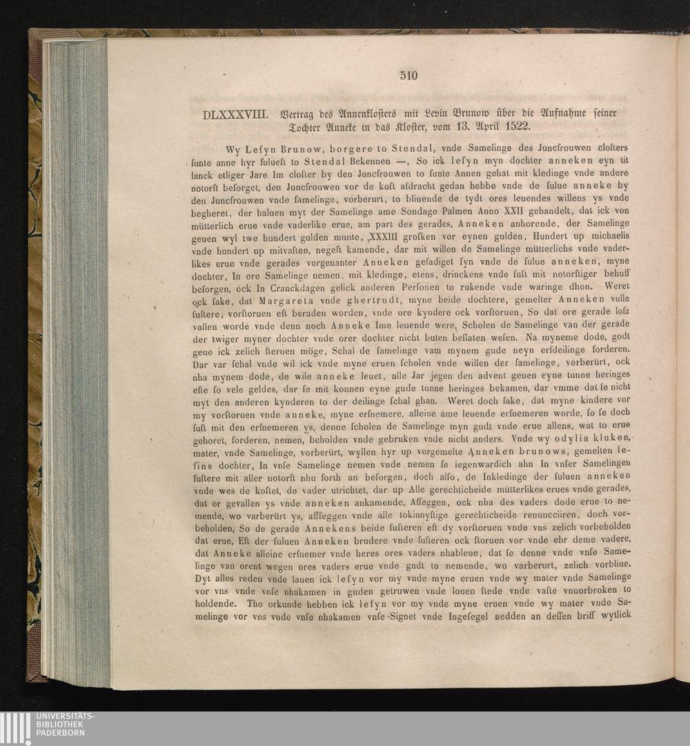 DLXXXVIII. Vertrag des Annenklosters mit Levin Brunow über die Aufnahme seiner Tochter[...]