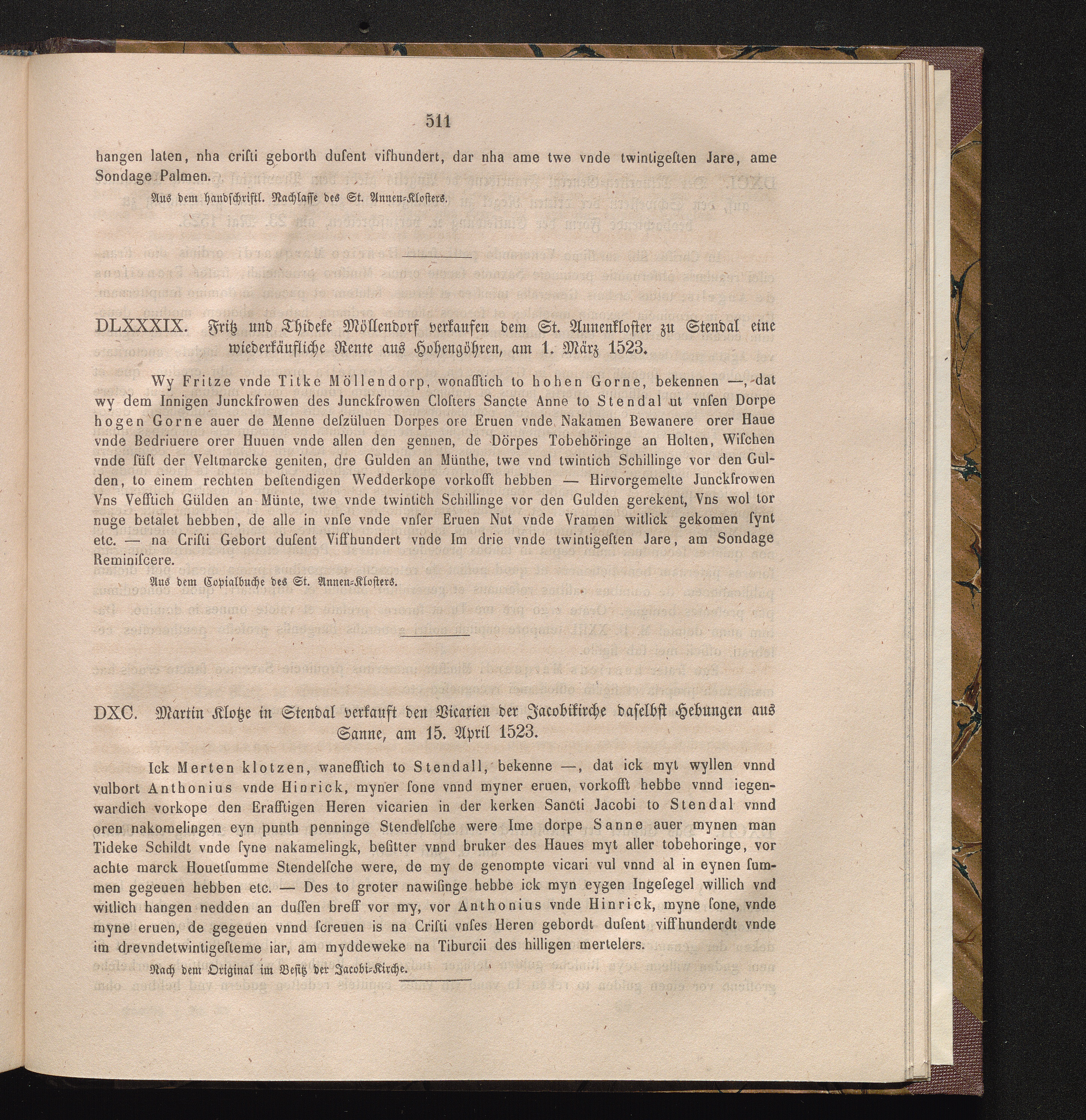DXC. Martin Klotze in Stendal verkauft den Vicarien der Jacobikirche daselbst Hebungen[...]
