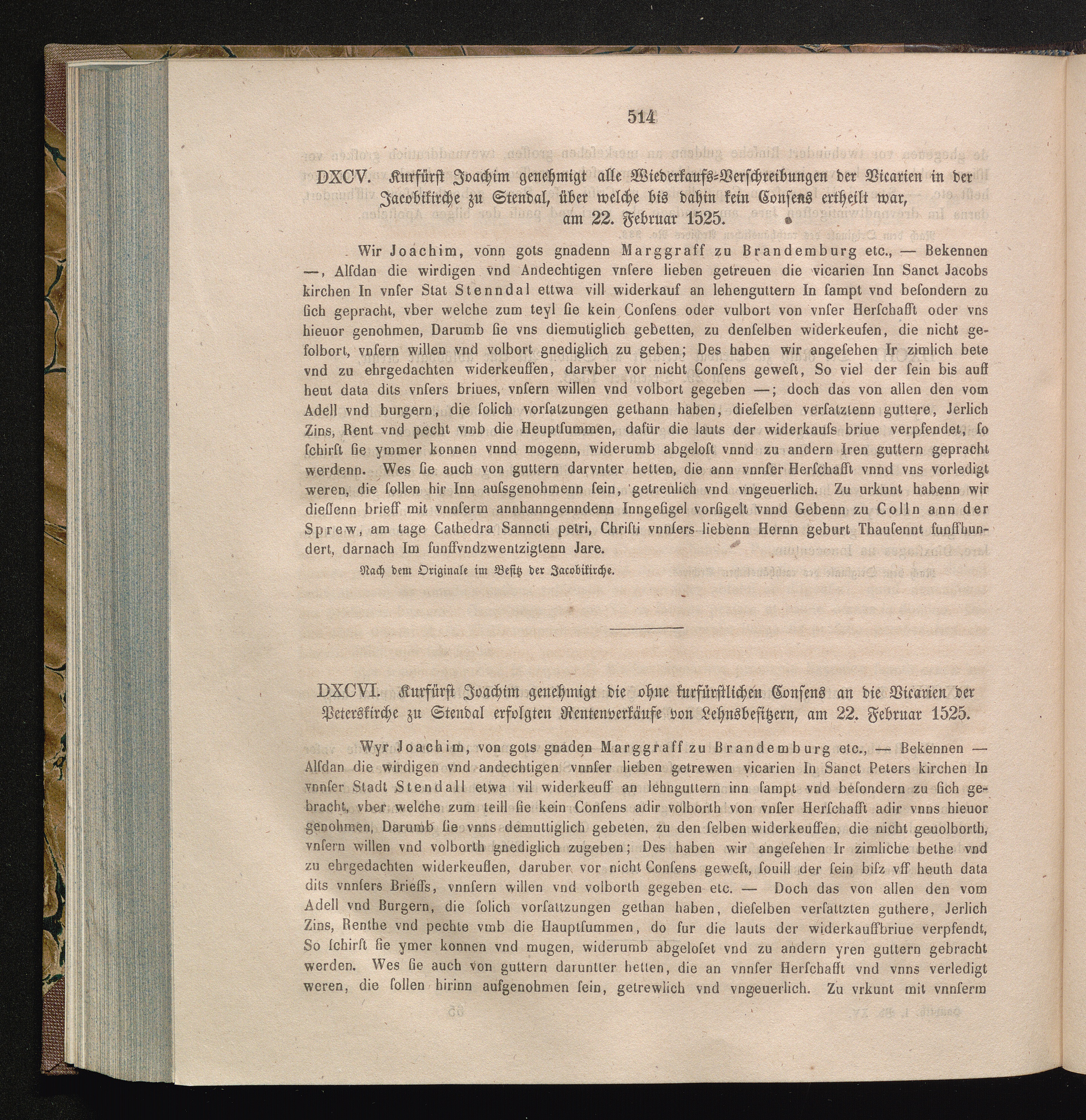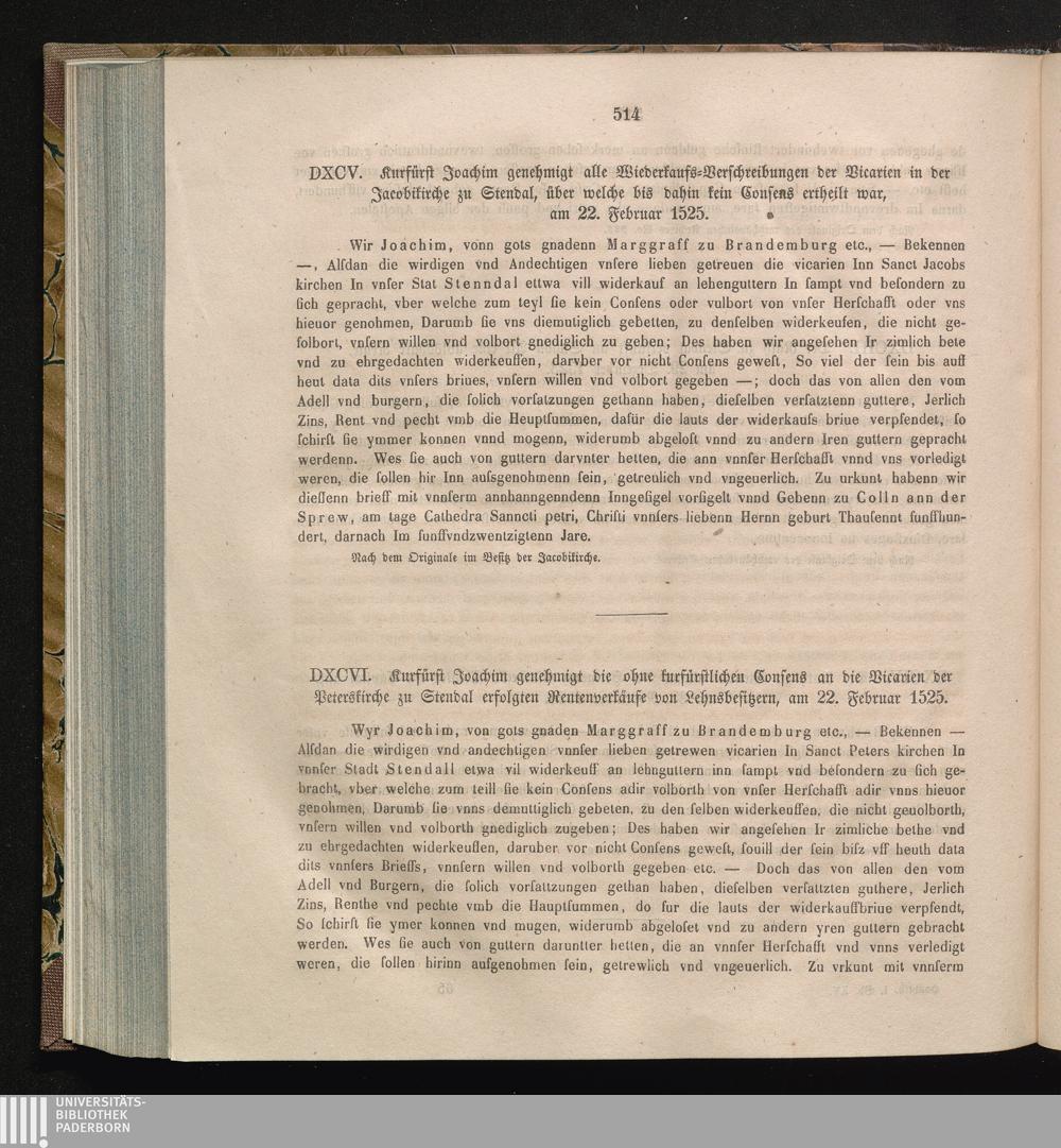 DXCVI. Kurfürst Joachim genehmigt die ohne kurfürstlichem Consens an die Vicarien[...]