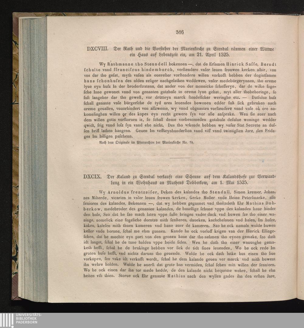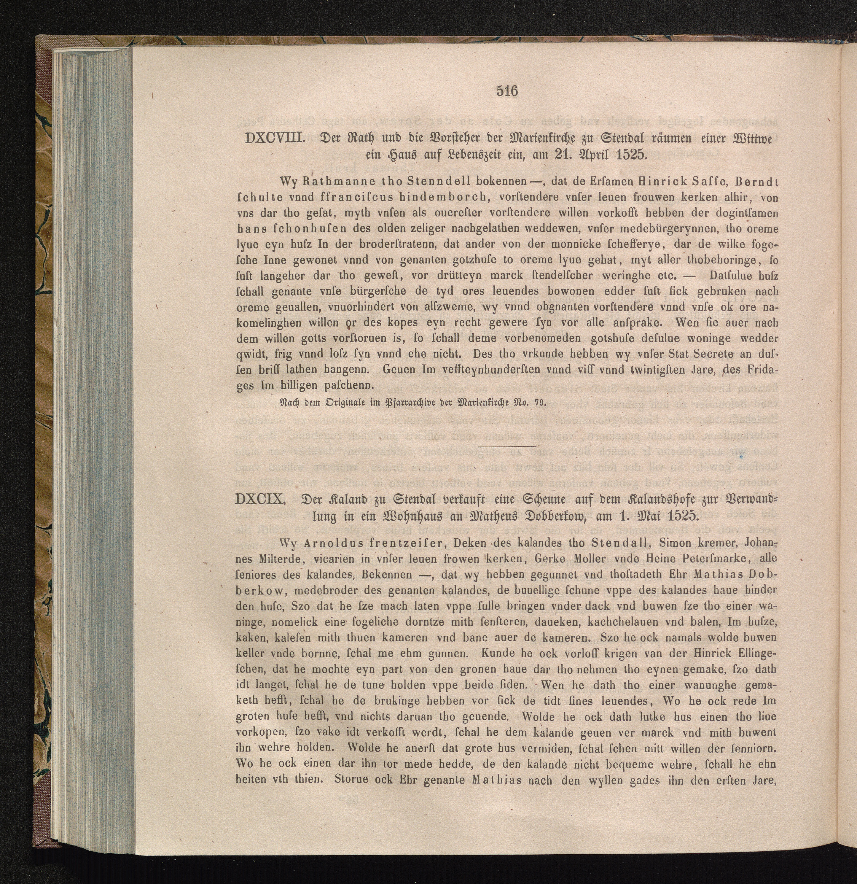 DXCIX. Der Kaland zu Stendal verkauft eine Scheune auf dem Kalandshofe zur Verwandlung[...]