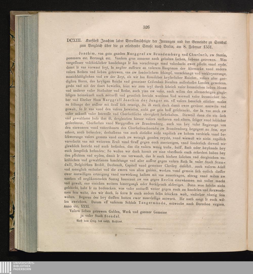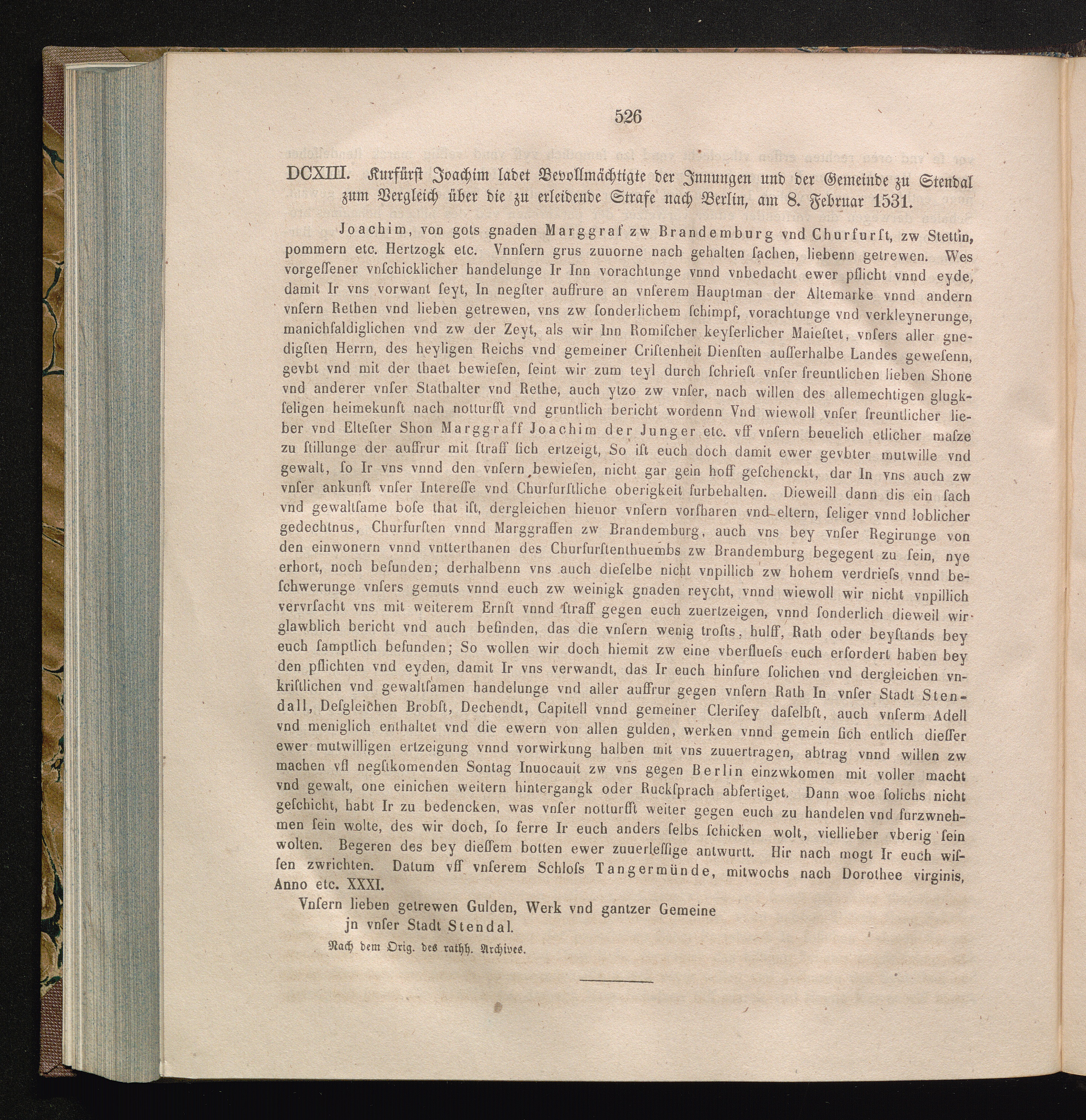 DCXIII. Kurfürst Joachim ladet Bevollmächtigte der Jnnungen und der Gemeinde zu Stendal[...]