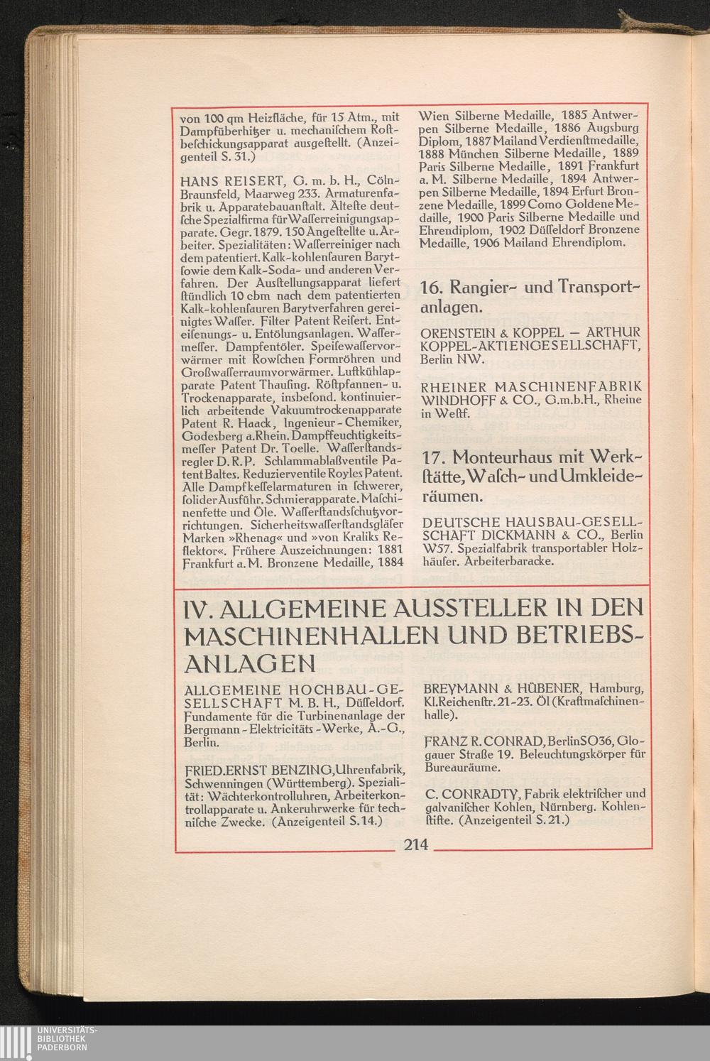 IV. Allgemeine Aussteller in den Maschinenhallen und Betriebsanlagen