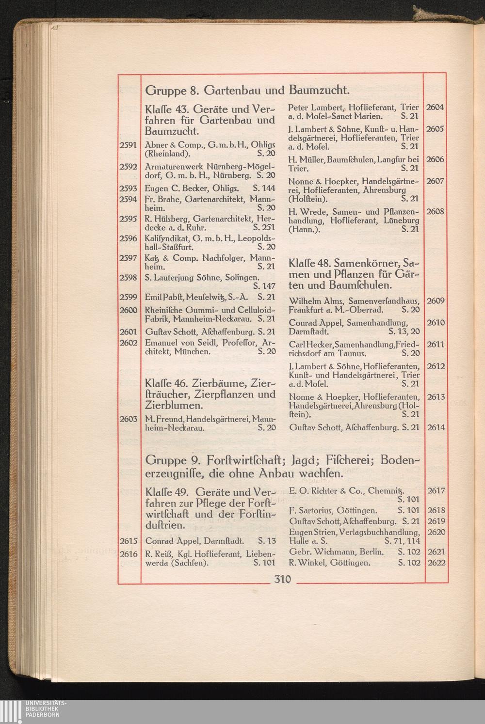 Teil IIa Ausstellerverzeichnis aufgrund der belgischen Klassifikation
