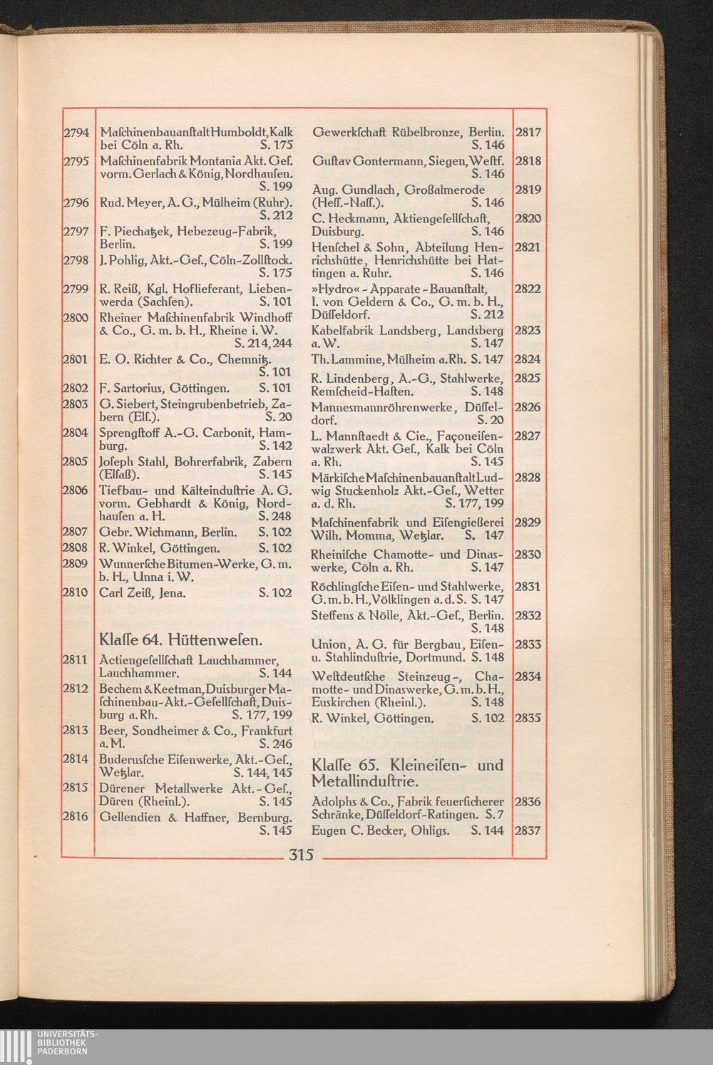 Klasse 65. Kleineisen- und Metallindustrie.