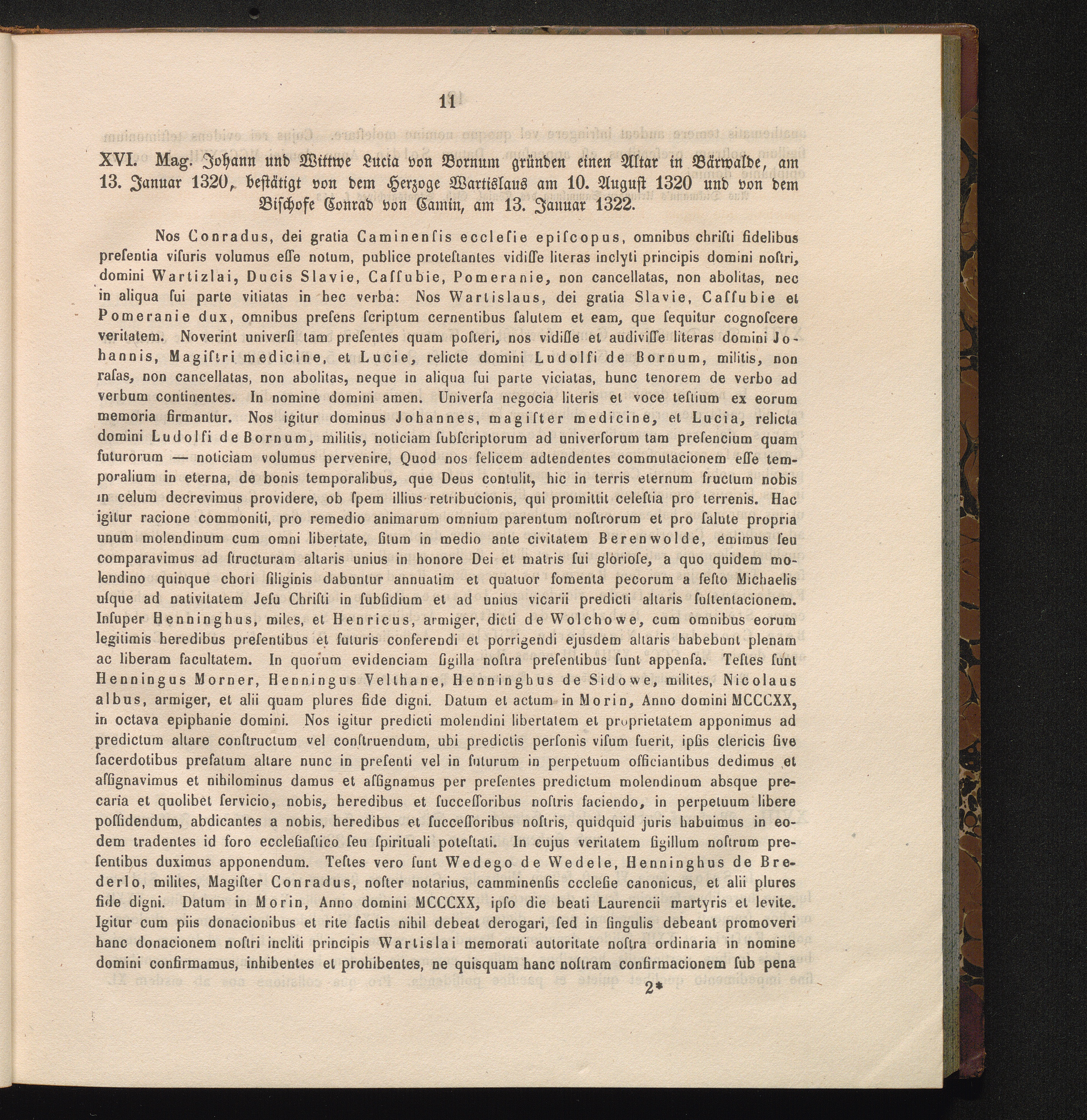 XVI. Mag. Johann und Wittwe Lucia von Bornum gründen einen Altar in Bärwalde, am[...]