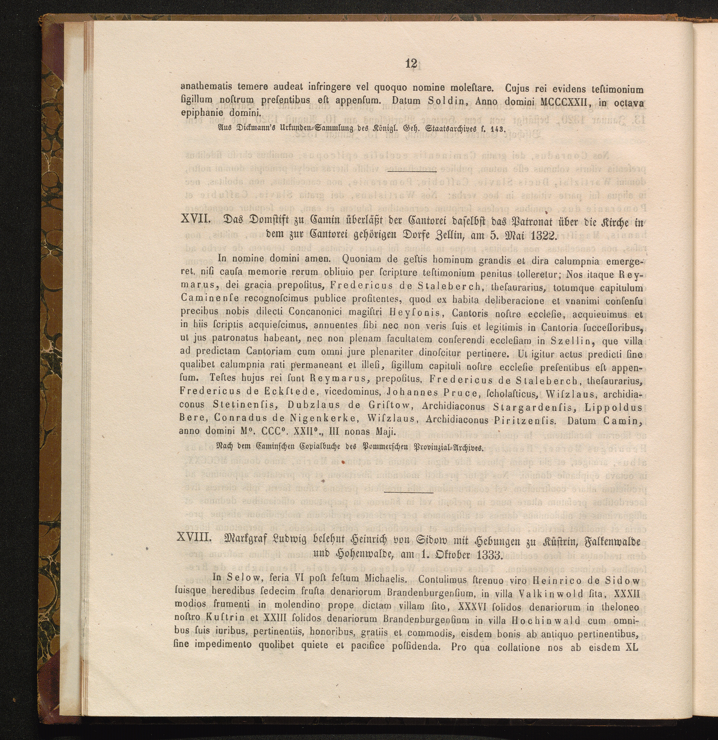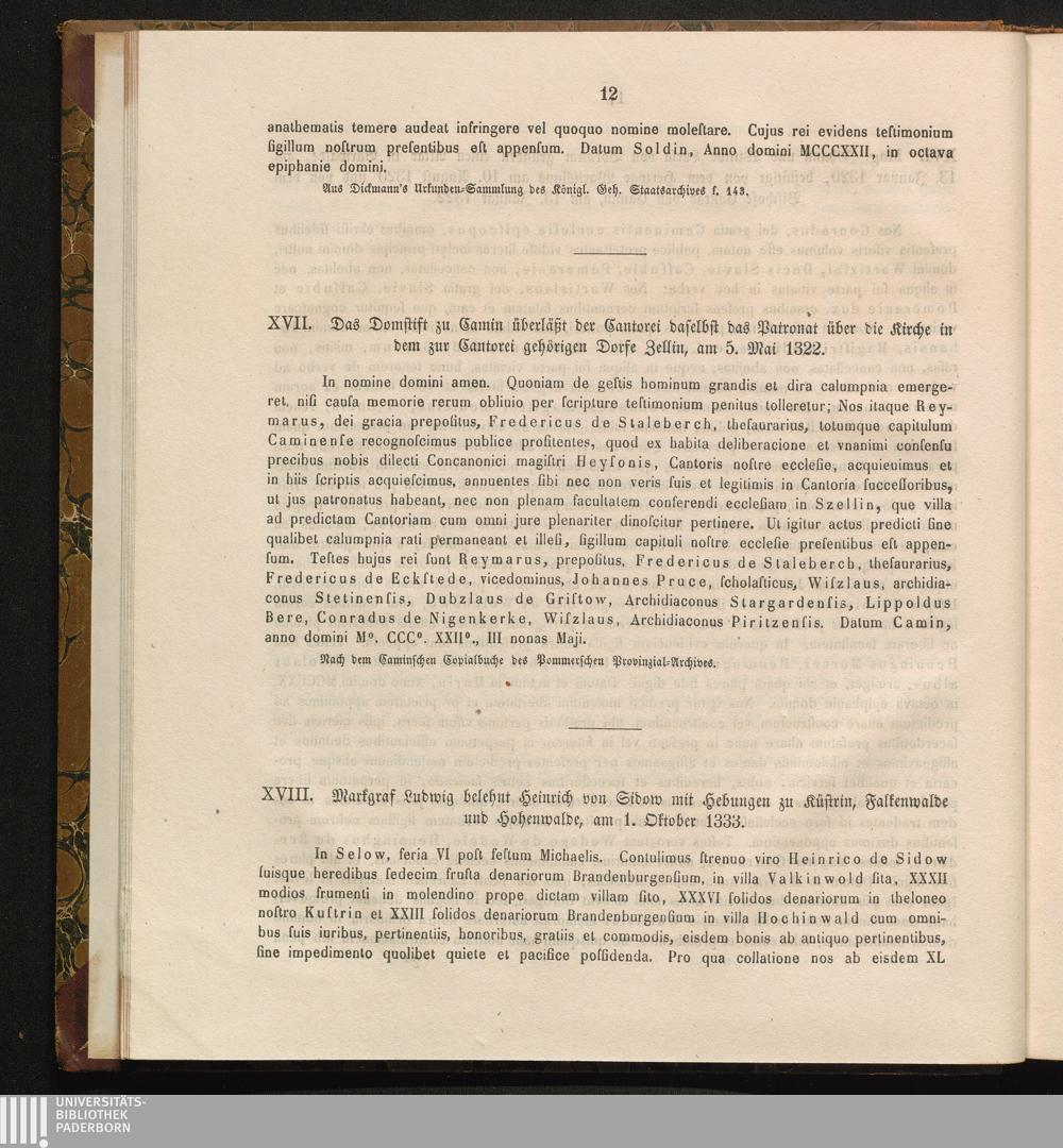 XVII. Das Domstift zu Camin überläßt der Cantorei daselbst das Patronat über ide[...]