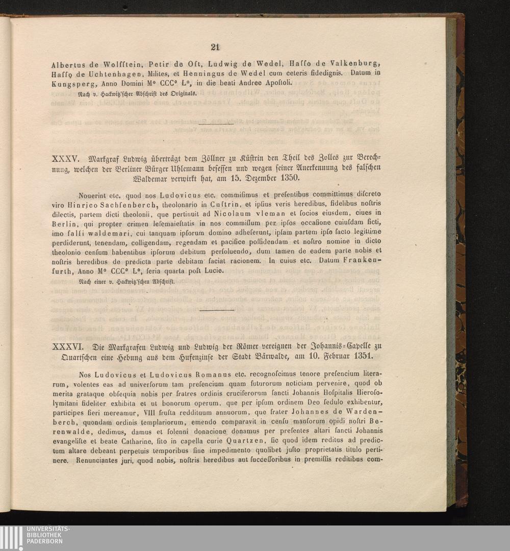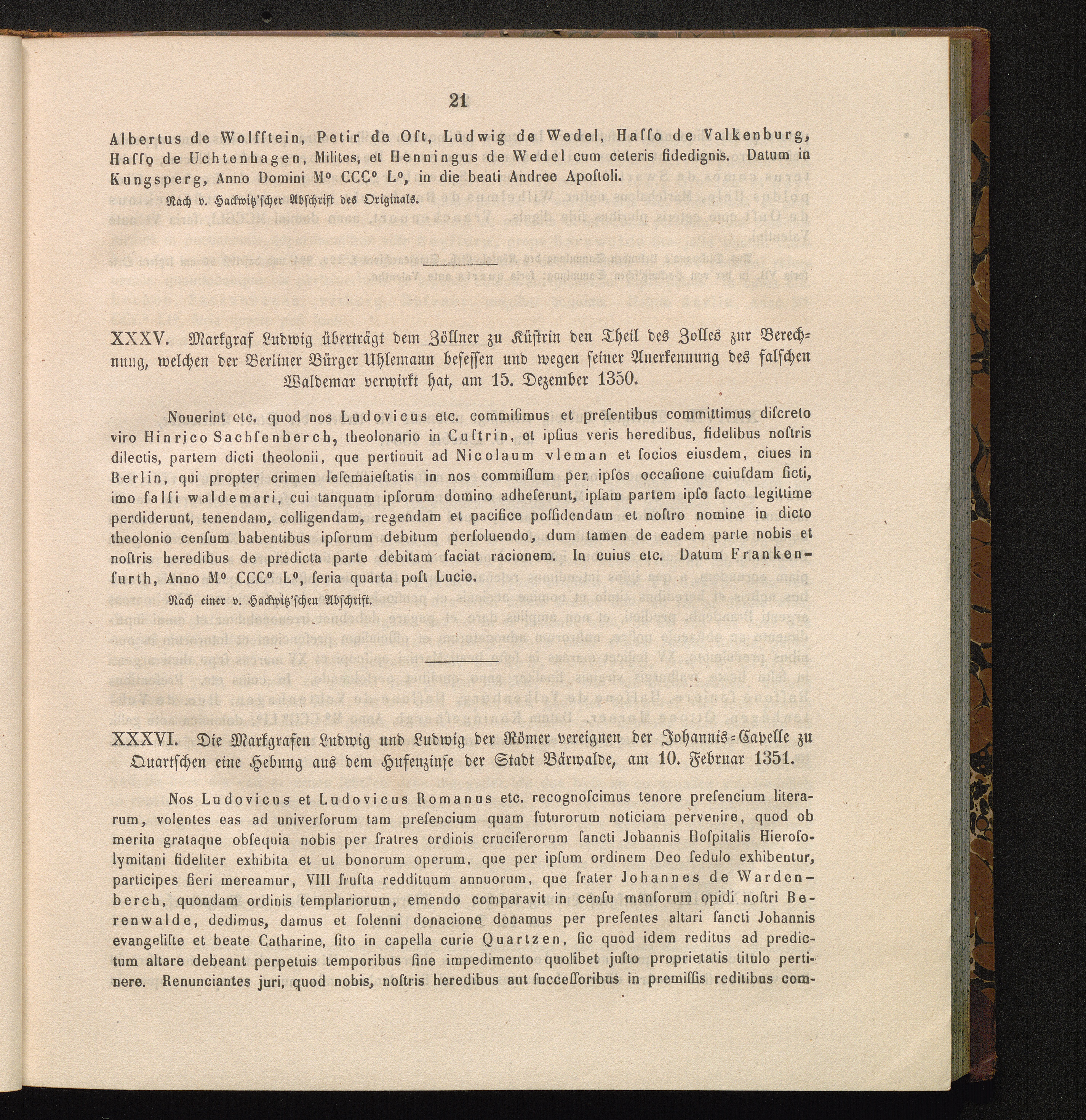XXXV. Markgraf Ludwig überträgt dem Zöllner zu Küstrin den Theil des Zolles zur Berechnung,[...]