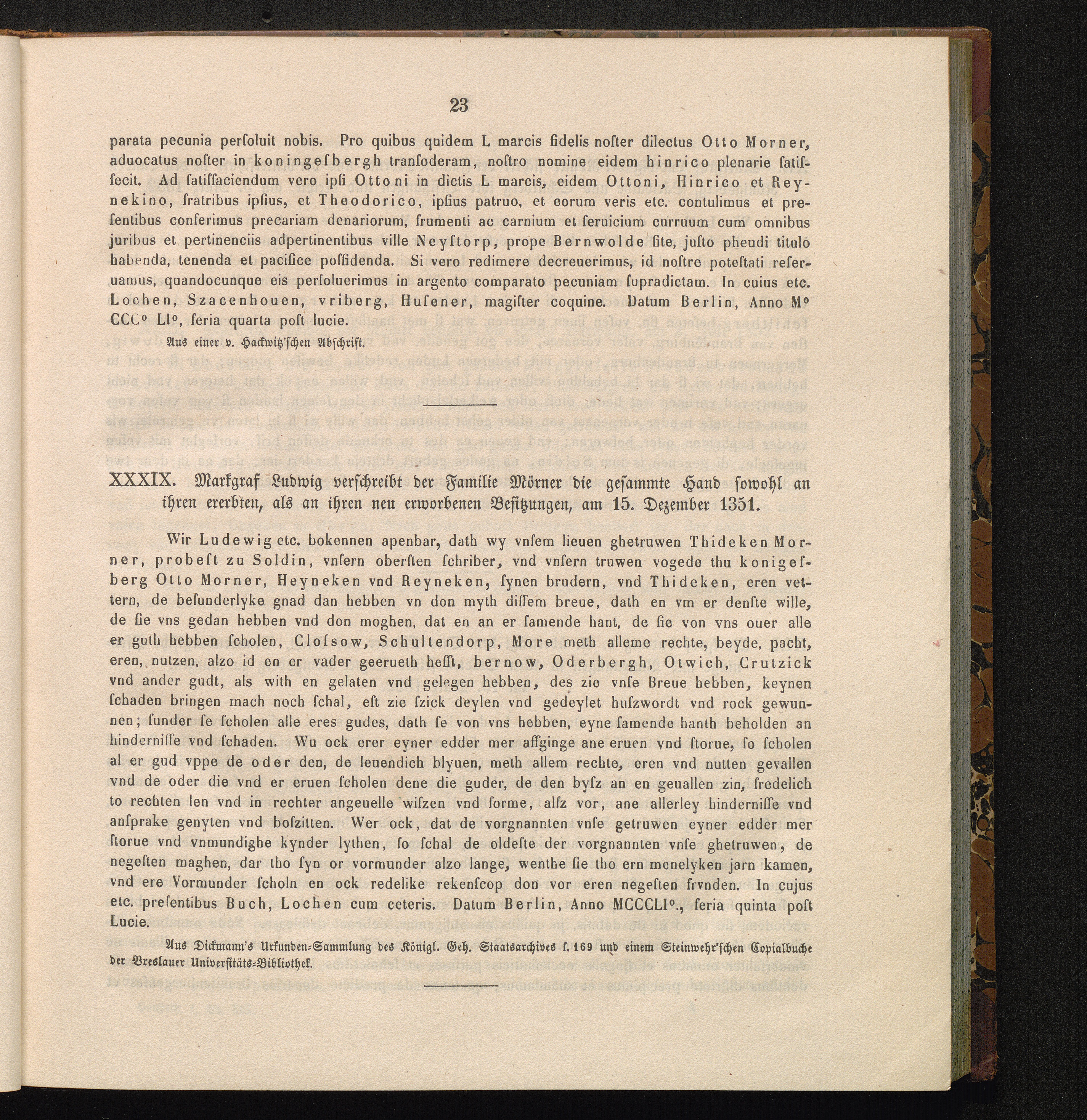 XXXVIII. Markgraf Ludwig belehnt die Mörner mit der Bede in Voigtsdorf, am 14. Dezember[...]
