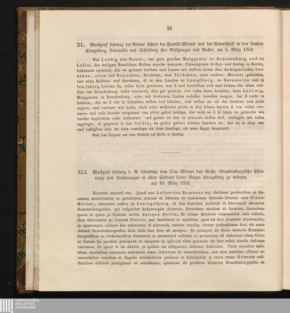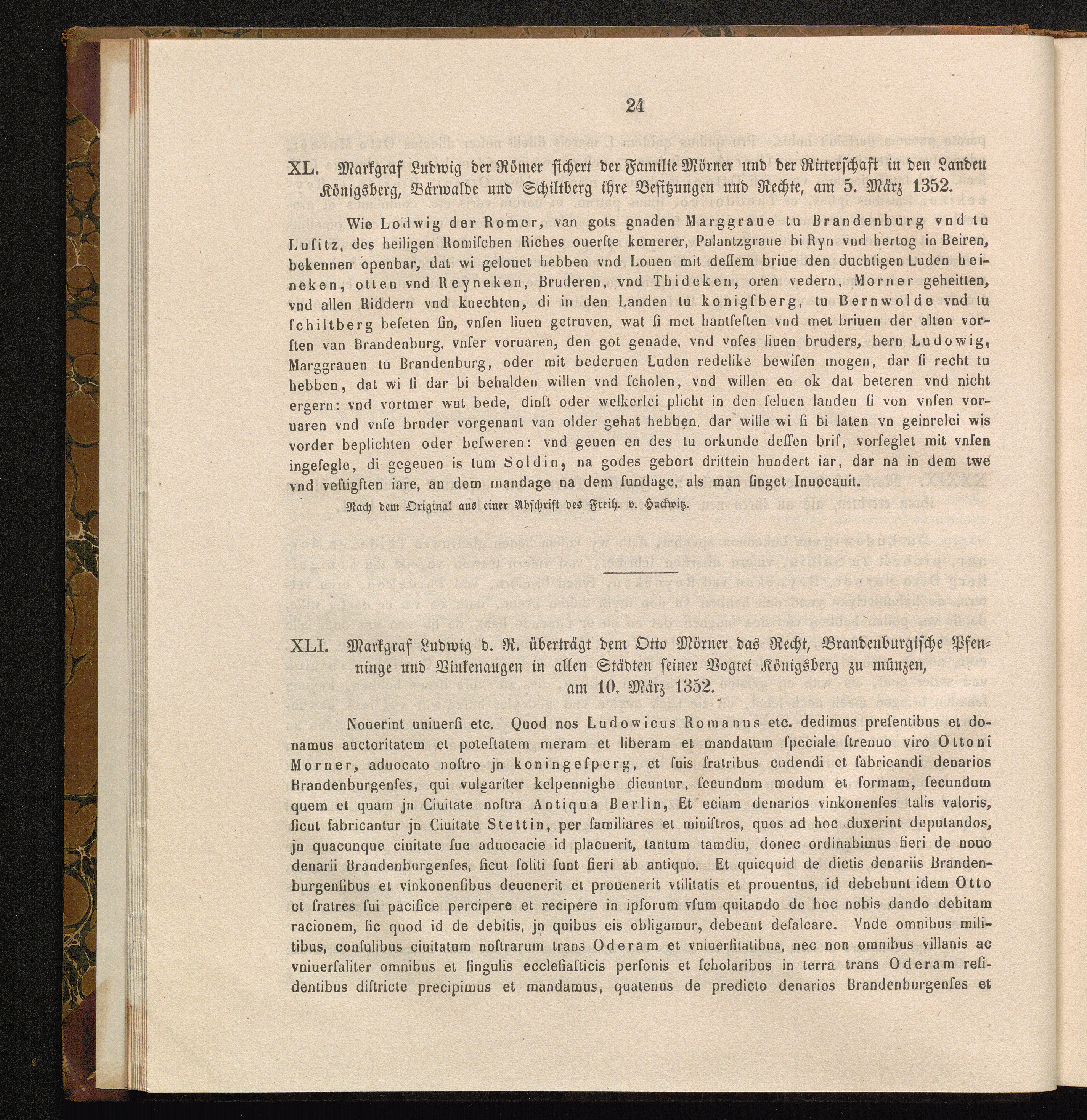 XL. Markgraf Ludwig der Römer sichert der Familie Mörner und der Ritterschaft in[...]