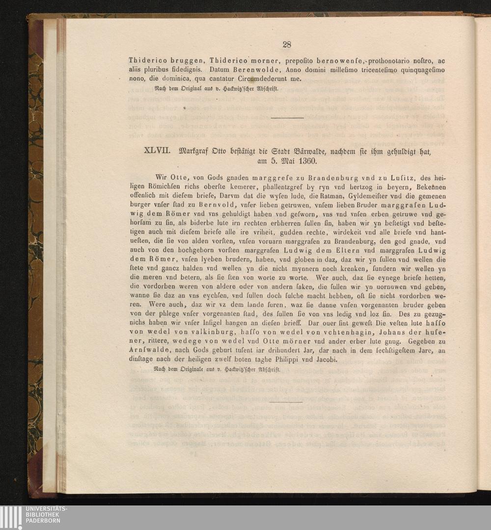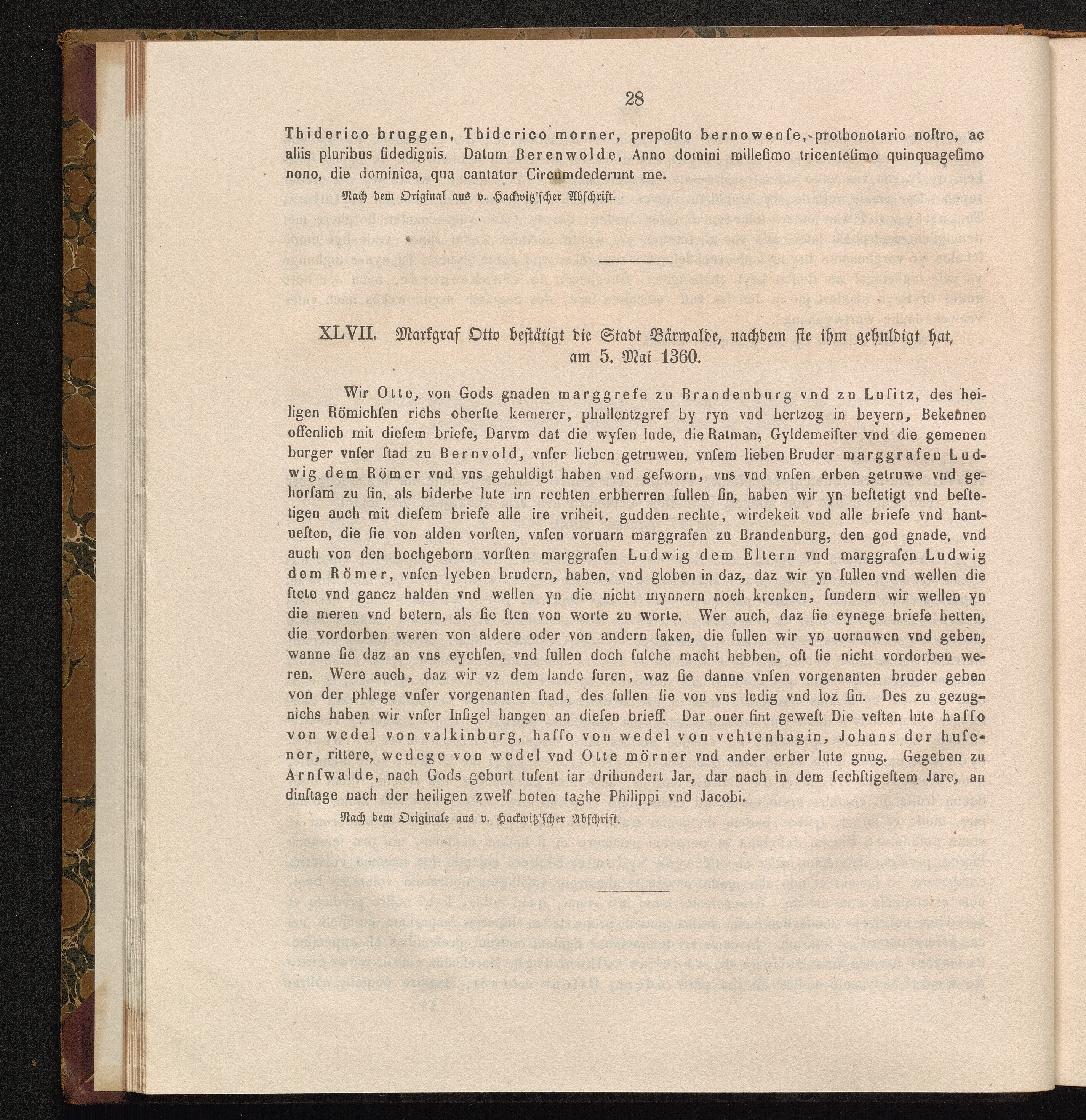 XLVII. Markgraf Otto bestätigt die Stadt Bärwalde, nachdem sie ihm gehuldigt hat,[...]