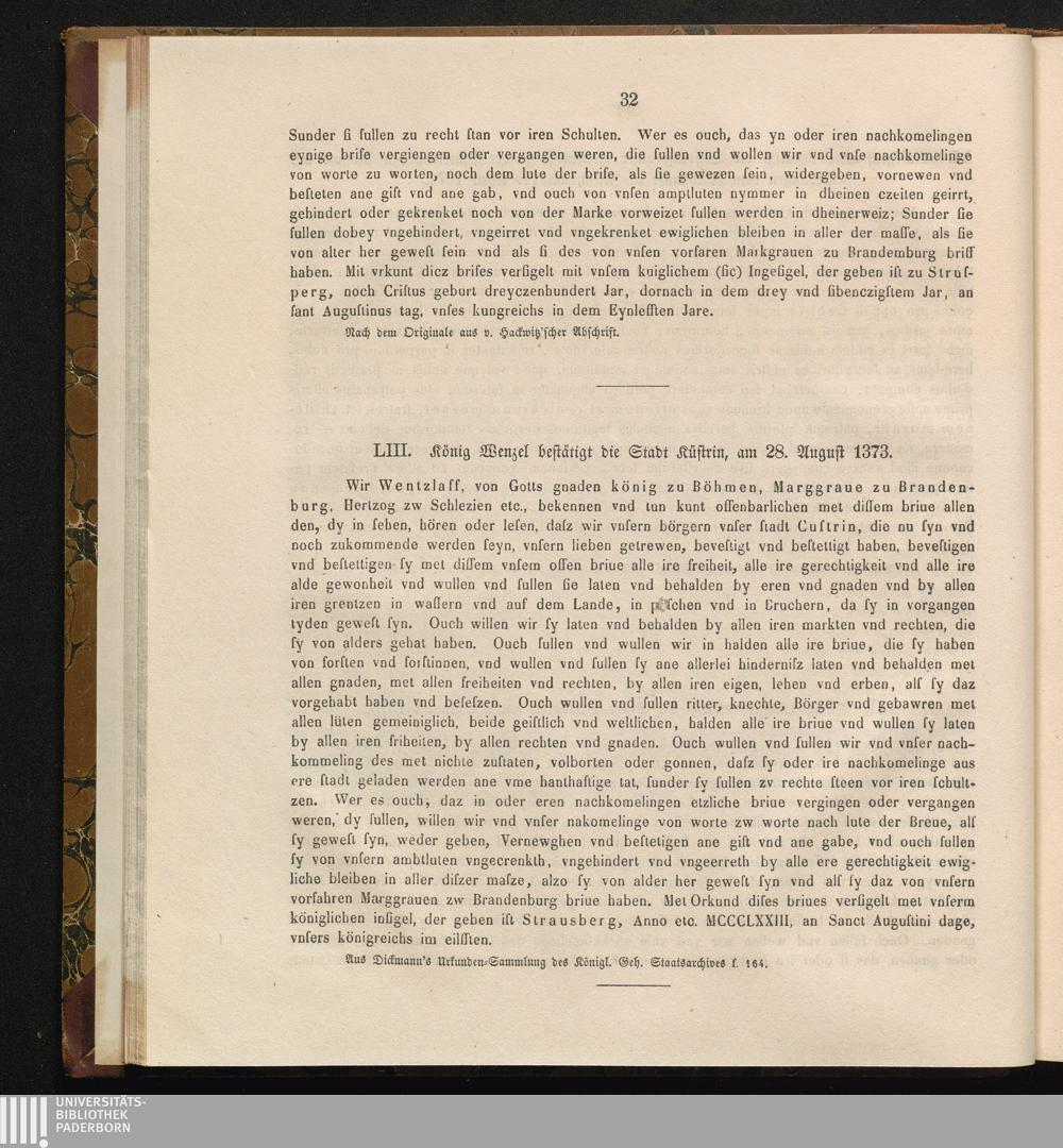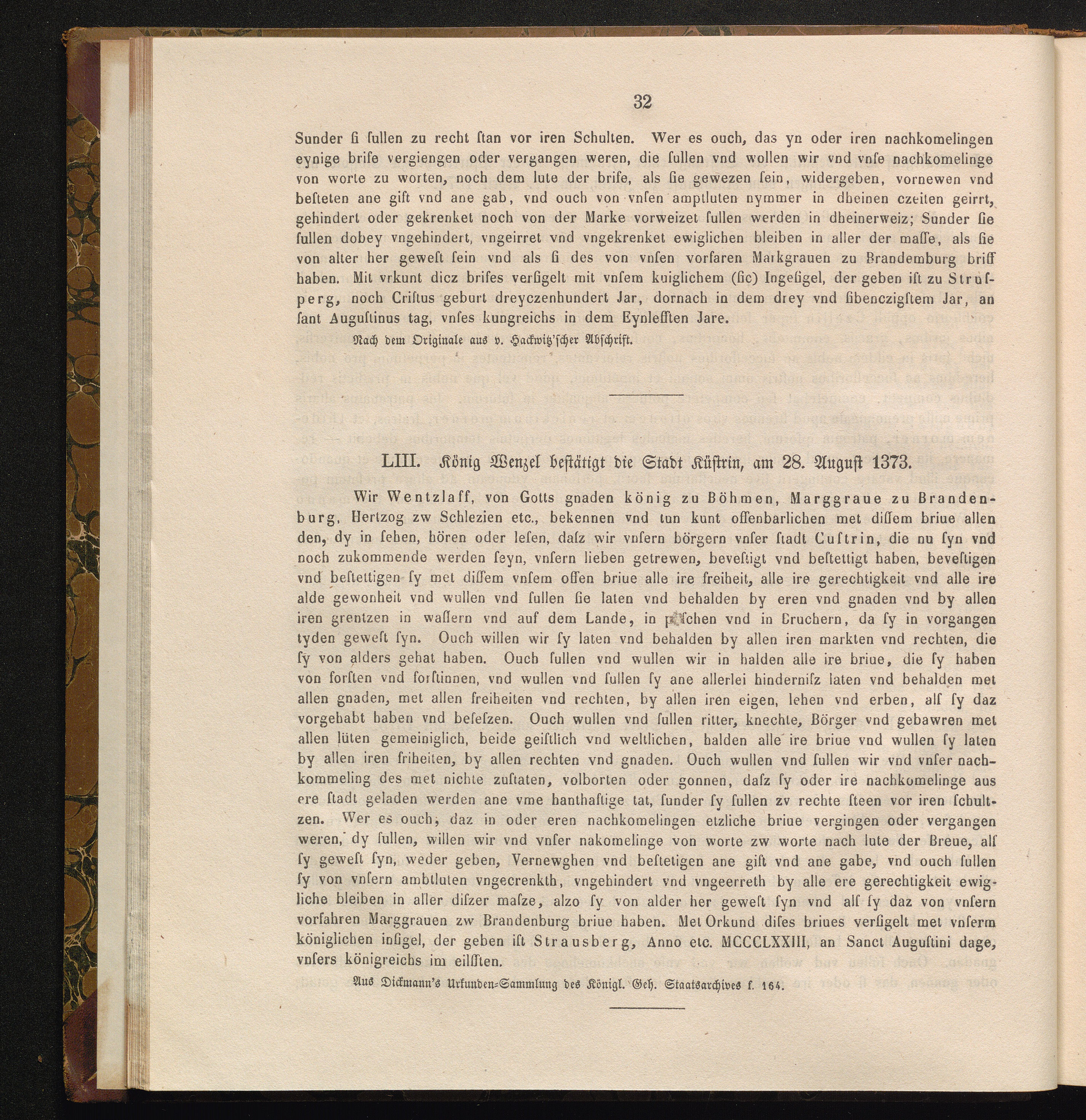 LIII. König Wenzel bestätigt die Stadt Küstrin, am 28. August 1373.