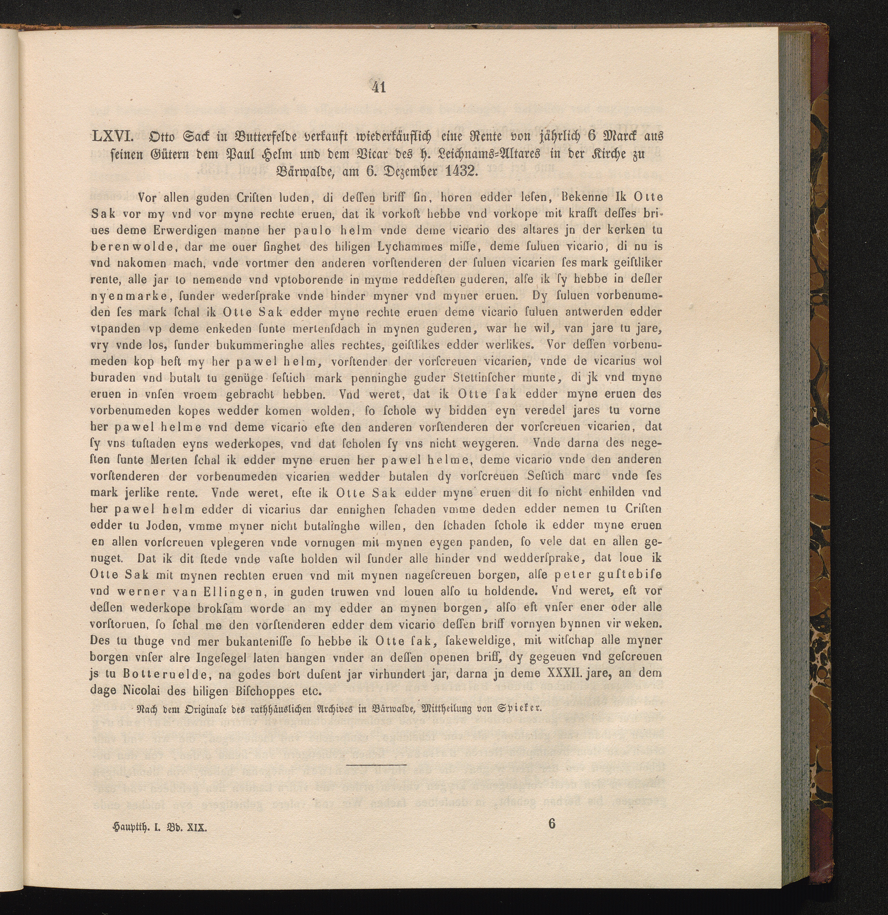 LXVI. Otto Sack in Butterfelde verkauft wiederkäuflich eine Rente von jährlich 6[...]