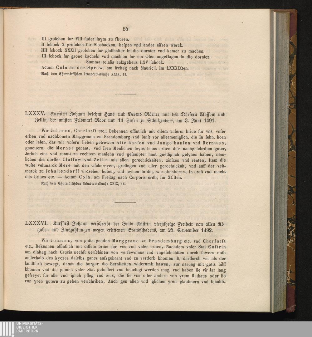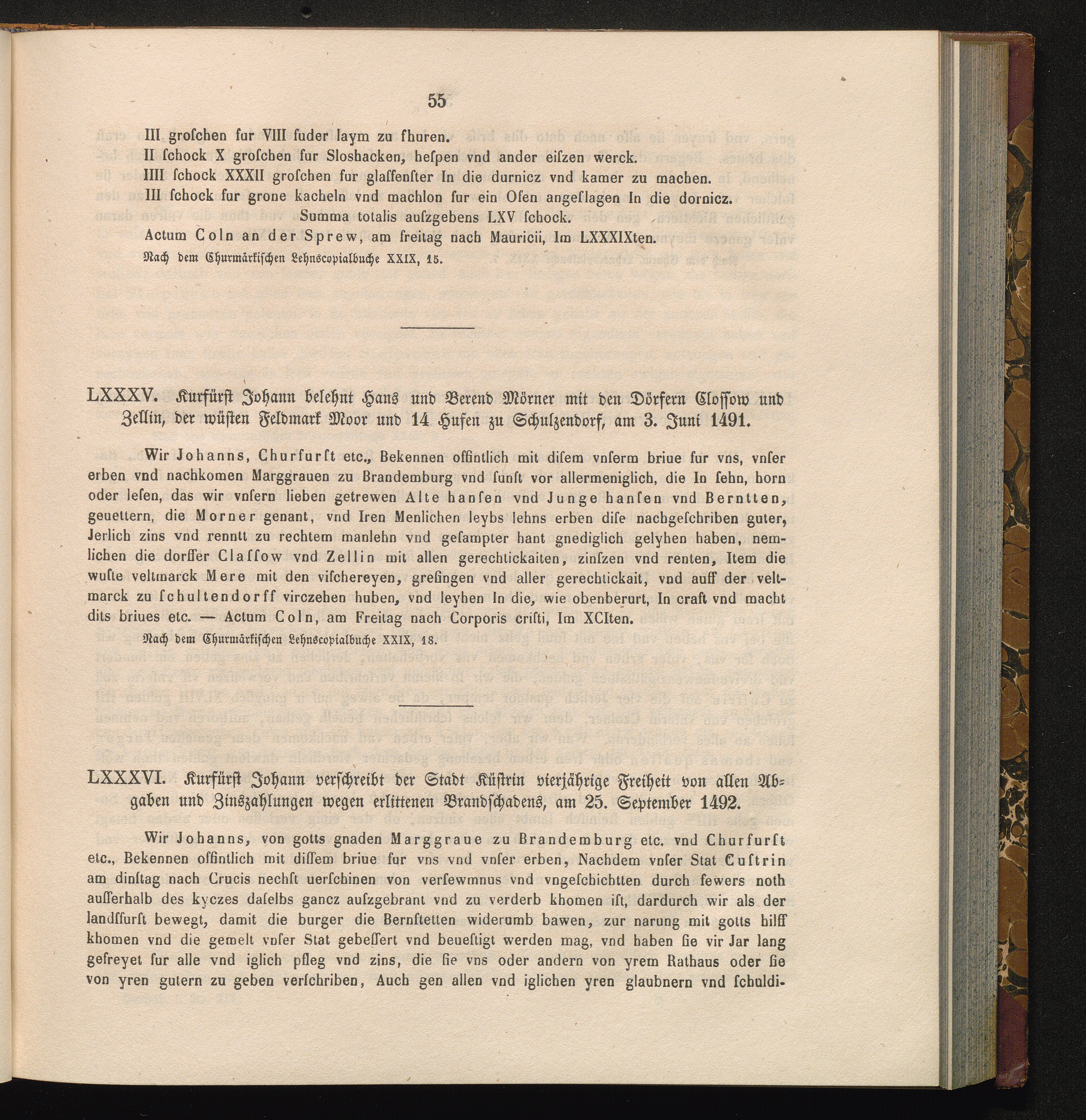 LXXXV. Kurfürst Johann belehnt Hans und Berend Mörner mit den Dörfern Clossow und[...]