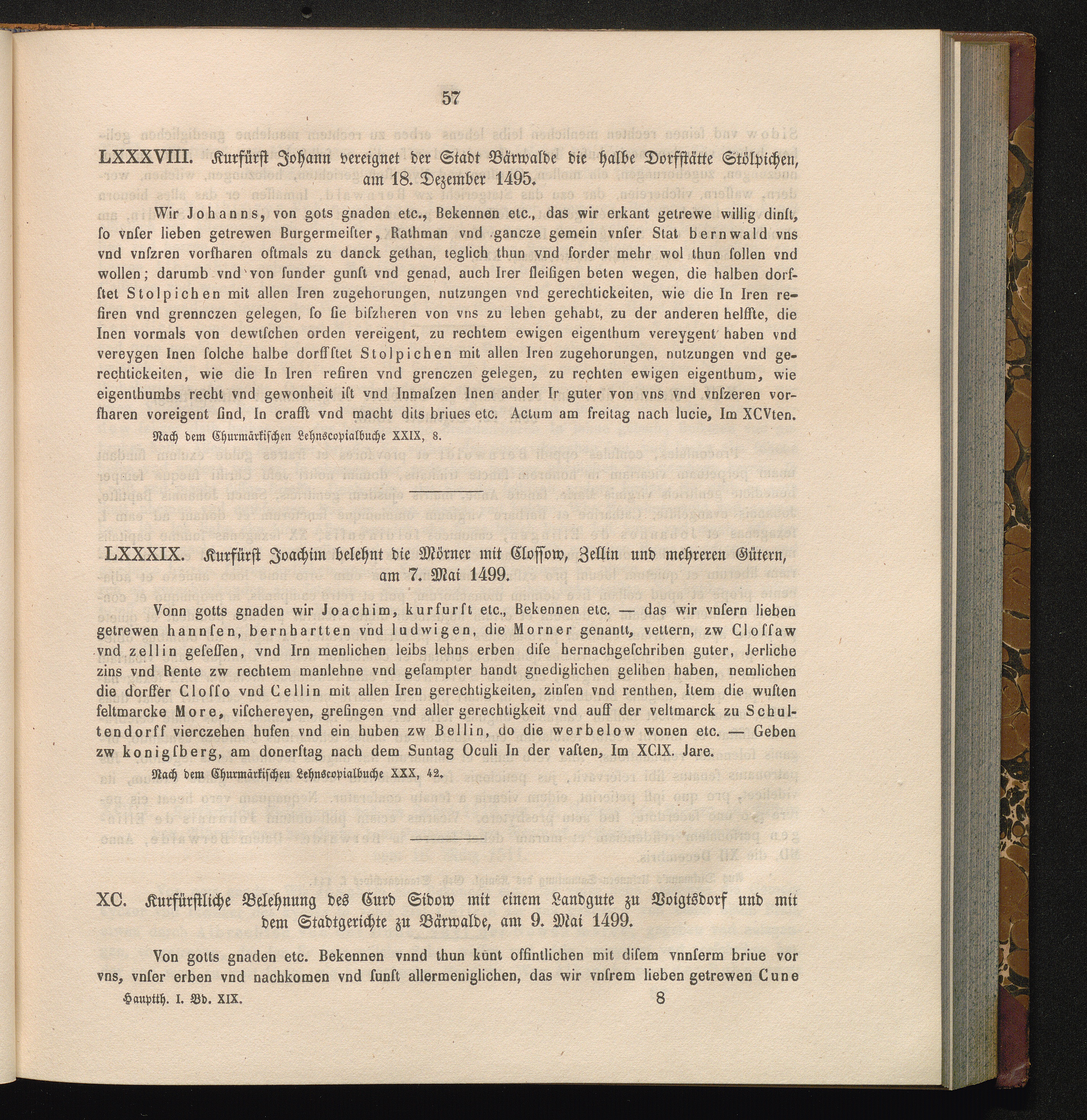 LXXXIX. Kurfürst Johann belehnt die Mörner mit Clossow, Zellin und mehreren Gütern,[...]