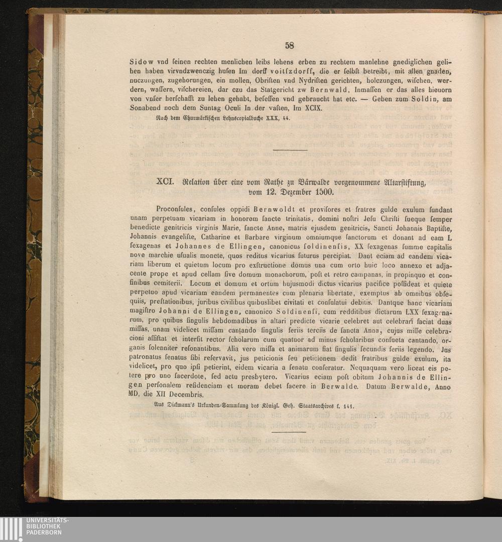 XCI. Relation über eine vom Rathe zu Bärwalde vorgenommene Altarstiftung, vom 12.[...]