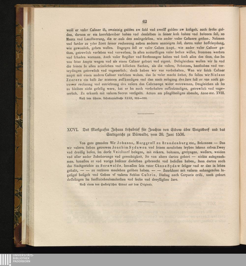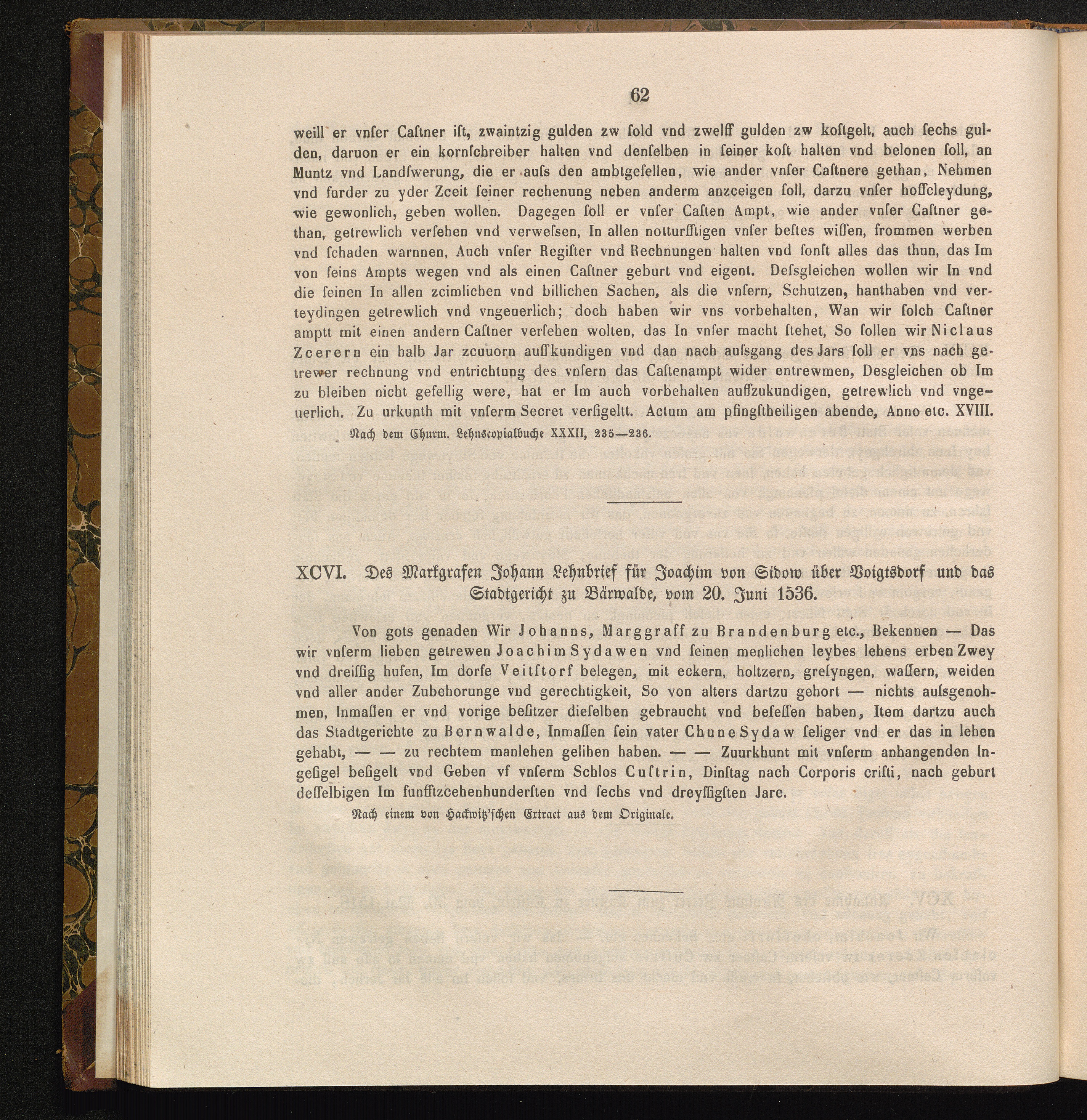 XCVI. Des Markgrafen Johann Lehnbrief für Joachim von Sidow über Voigtsdorf und das[...]