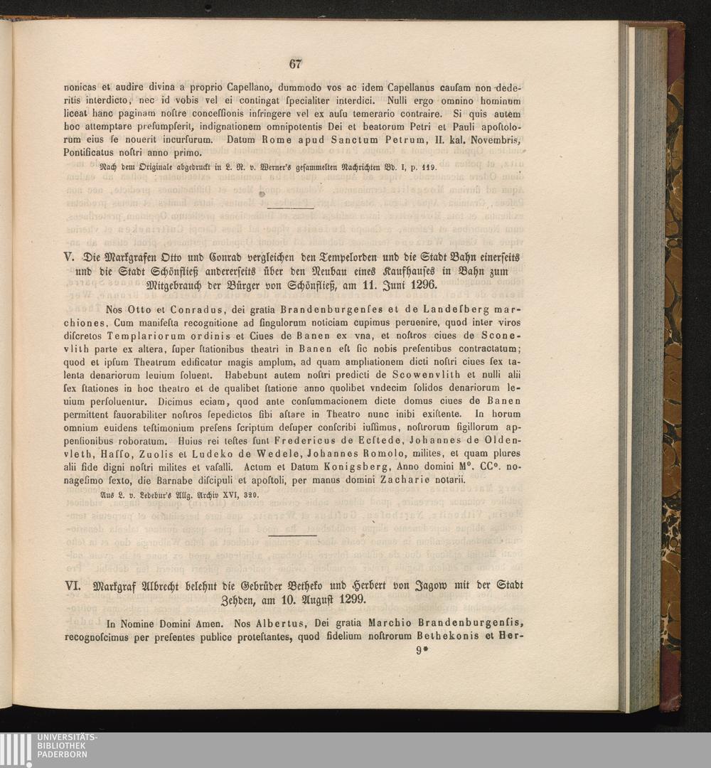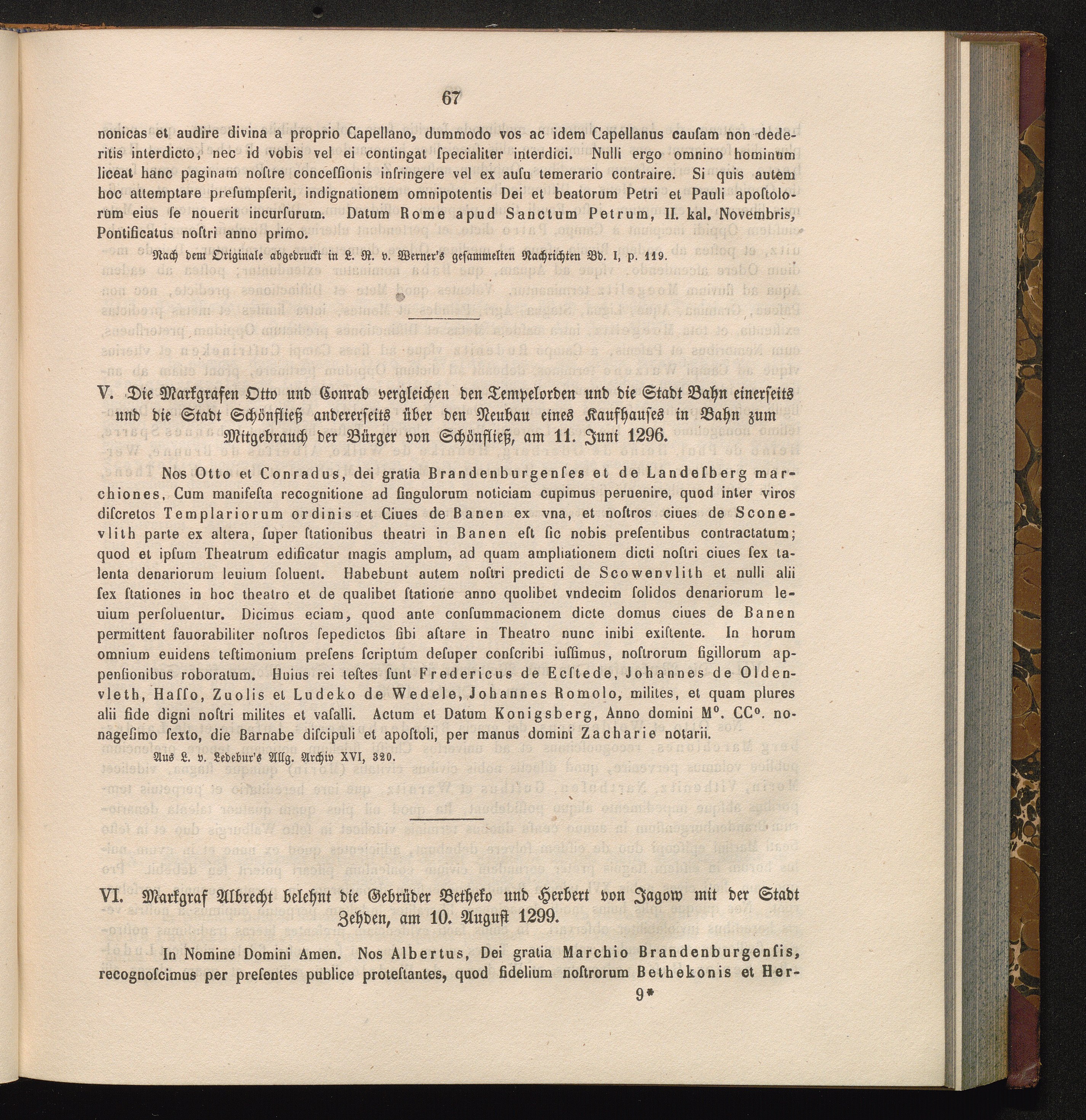V. Die Markgrafen Otto und Conrad vergleichen den Tempelorden und die Stadt Bahn[...]
