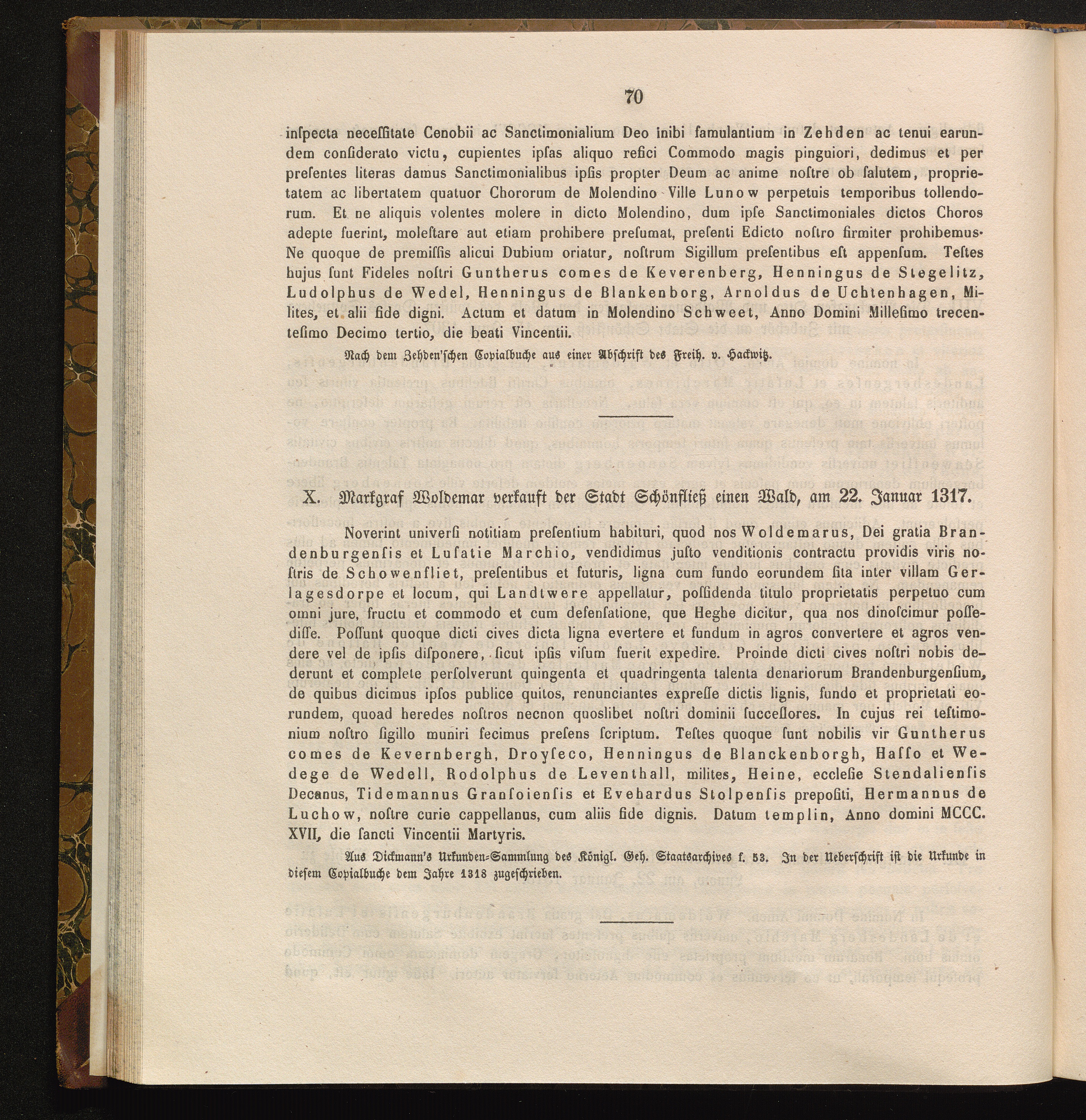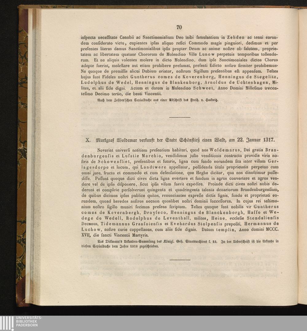 X. Markgraf Waldemar verkauft der Stadt Schönfließ einen Wald, am 22. Januar 131[...]