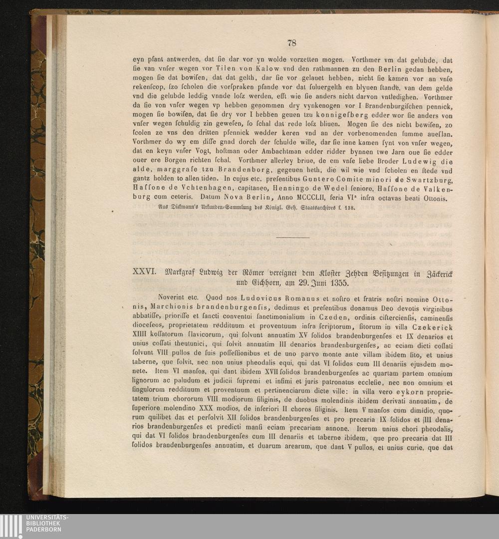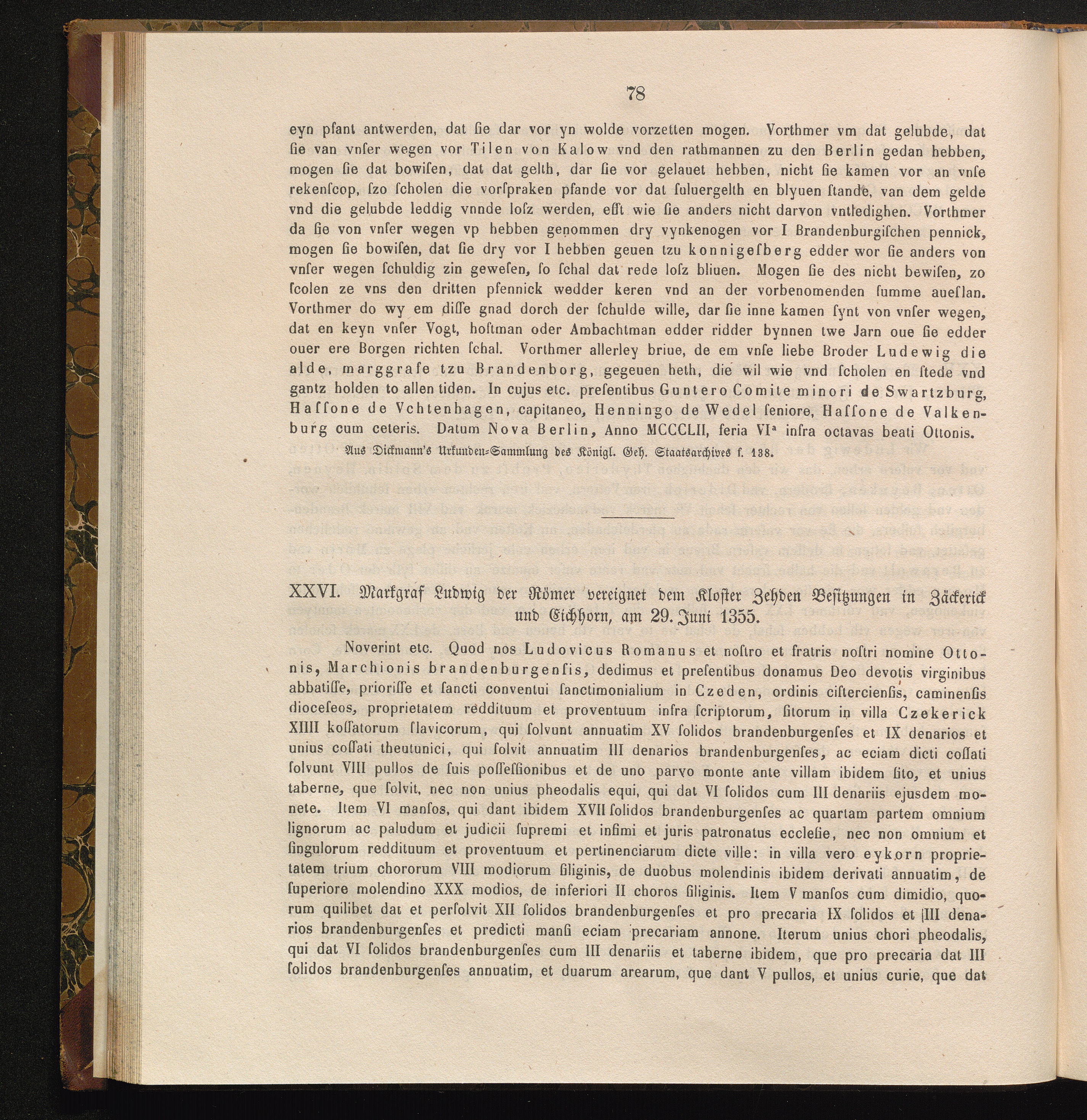 XXVI. Markgraf Ludwig der Römer vereignet dem Kloster Zehden Besitzungen in Zäckerick[...]