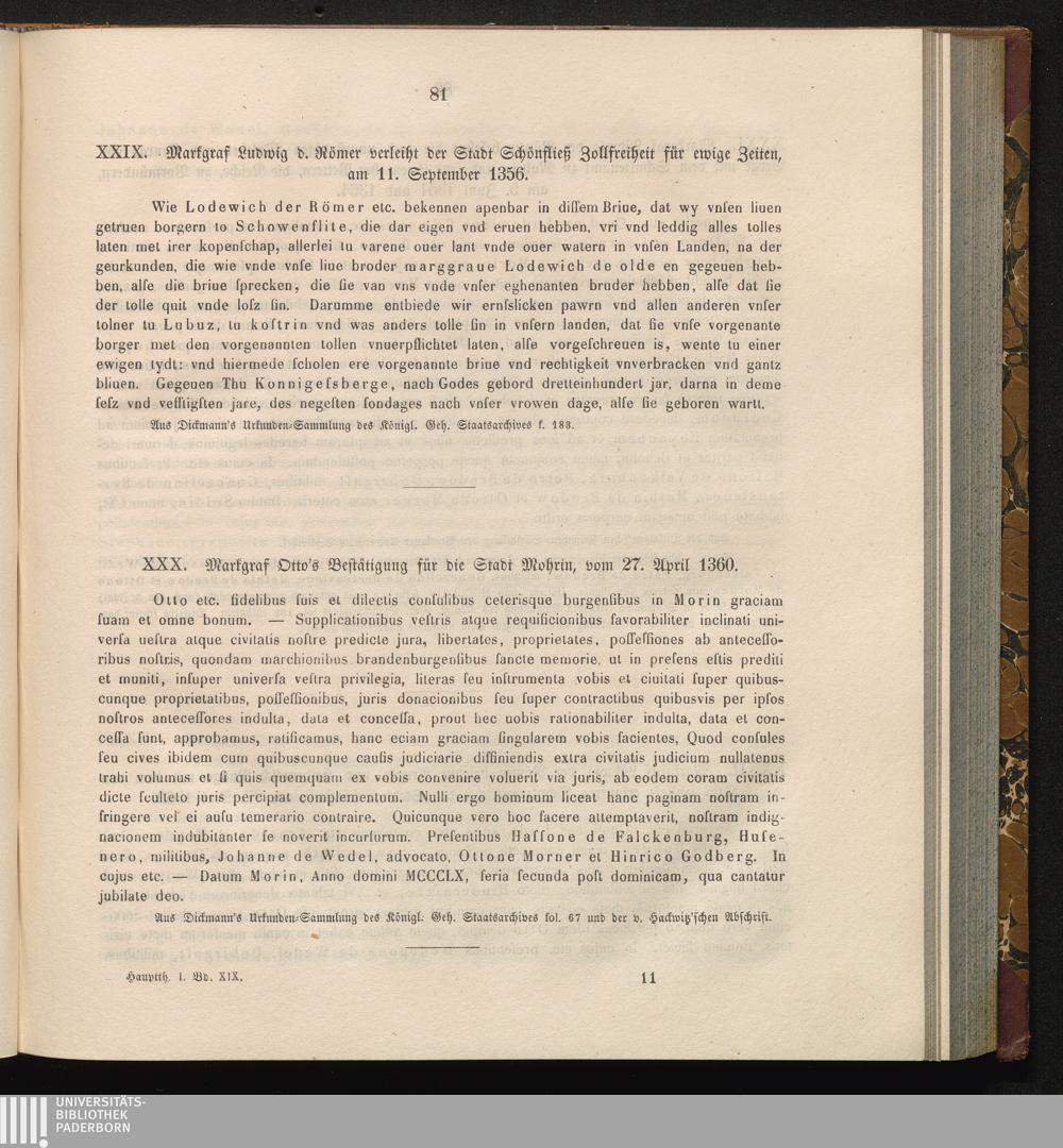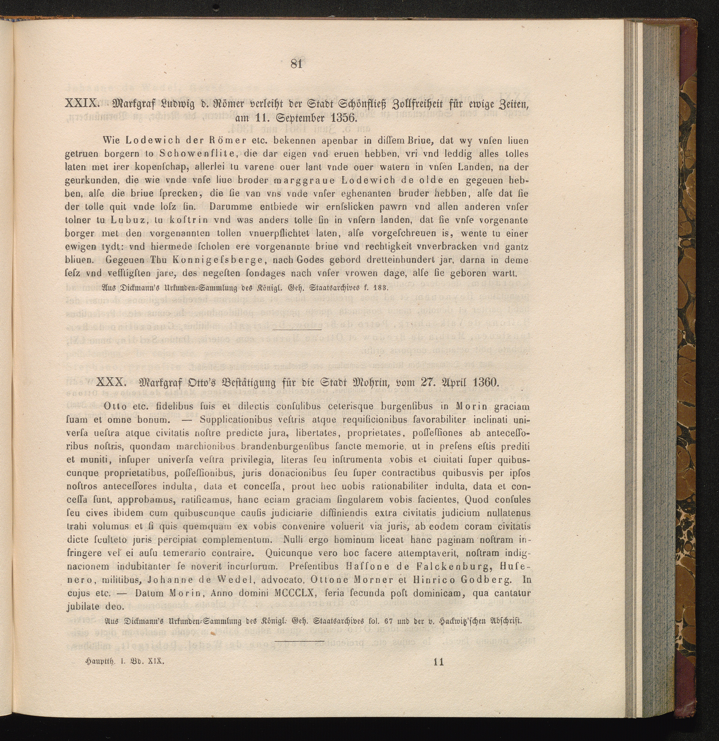 XXIX. Markgraf Ludwig d. Römer verleiht der Stadt Schönfließ Zollfreiheit für ewige[...]