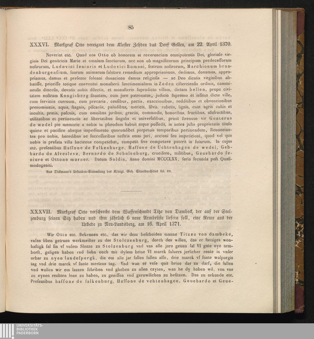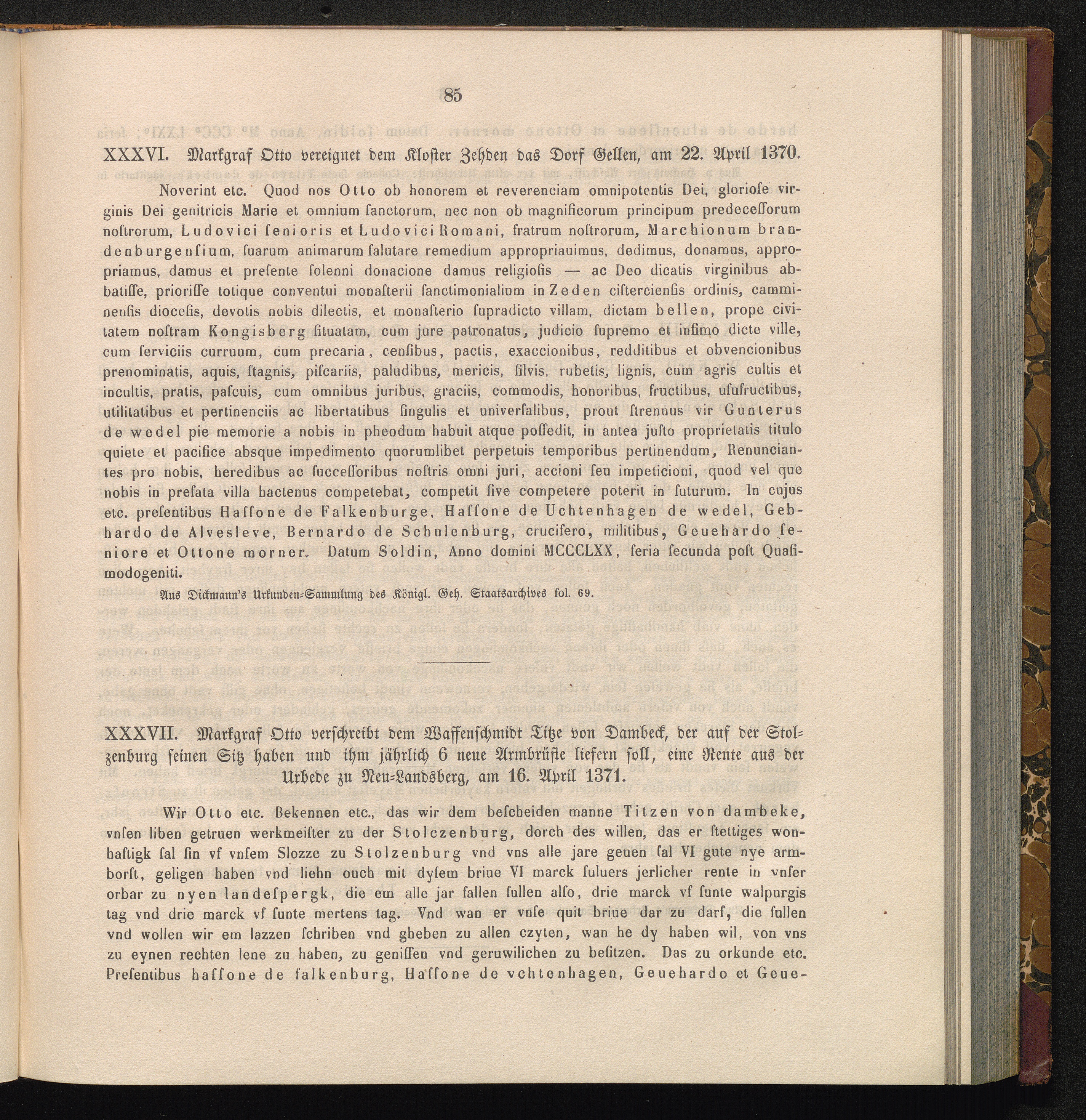 XXXVI. Markgraf Otto vereignet dem Kloster Zehden das Dorf Gellen, am 22. April [...]