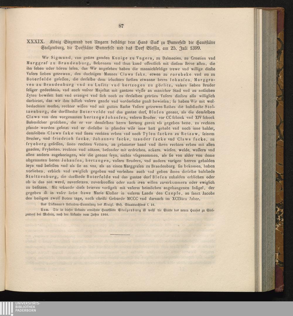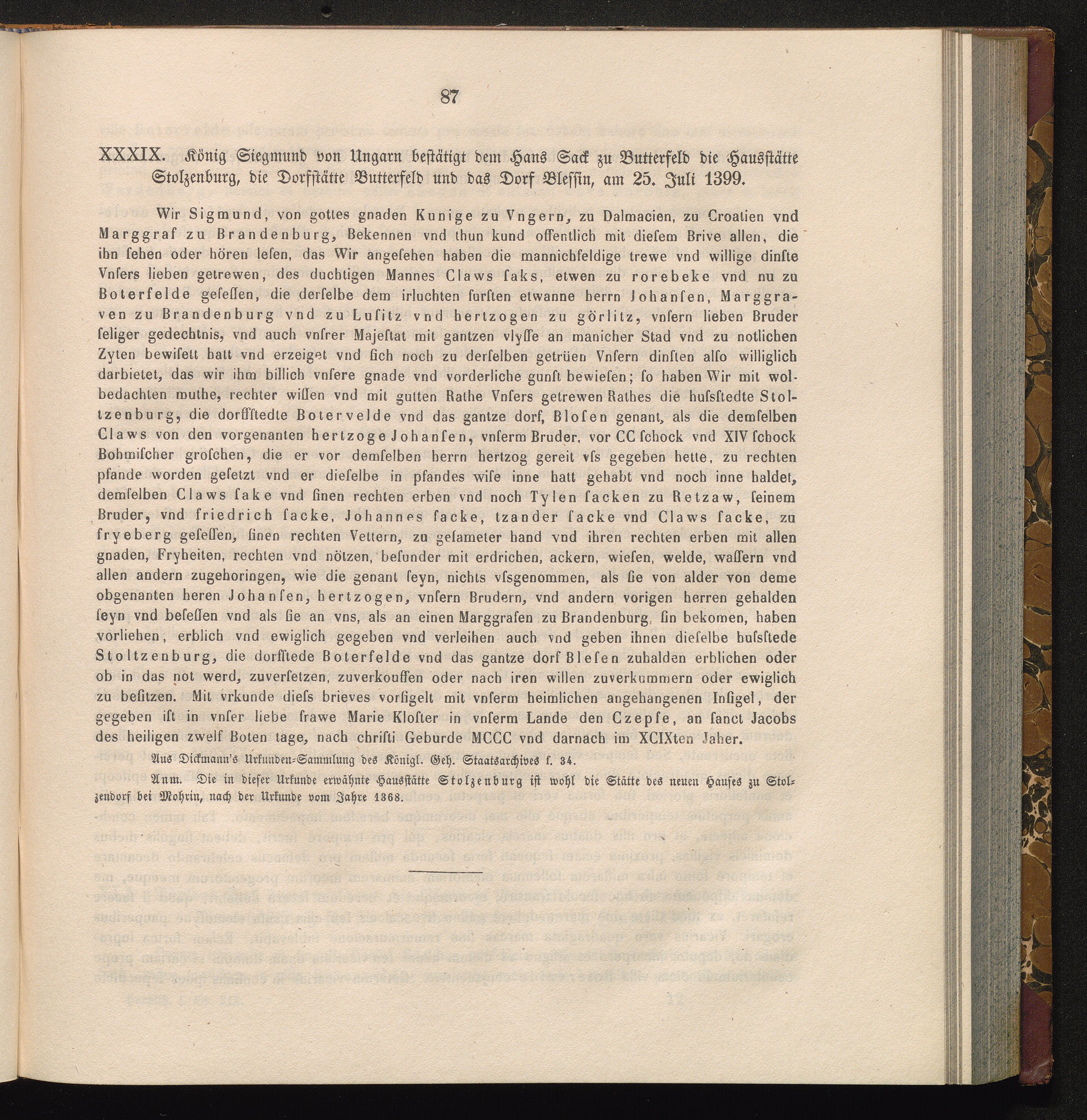 XXXIX. König Siegmund von Ungarn bestätigt dem Haus Sack zu Butterfeld die Hausstätte[...]