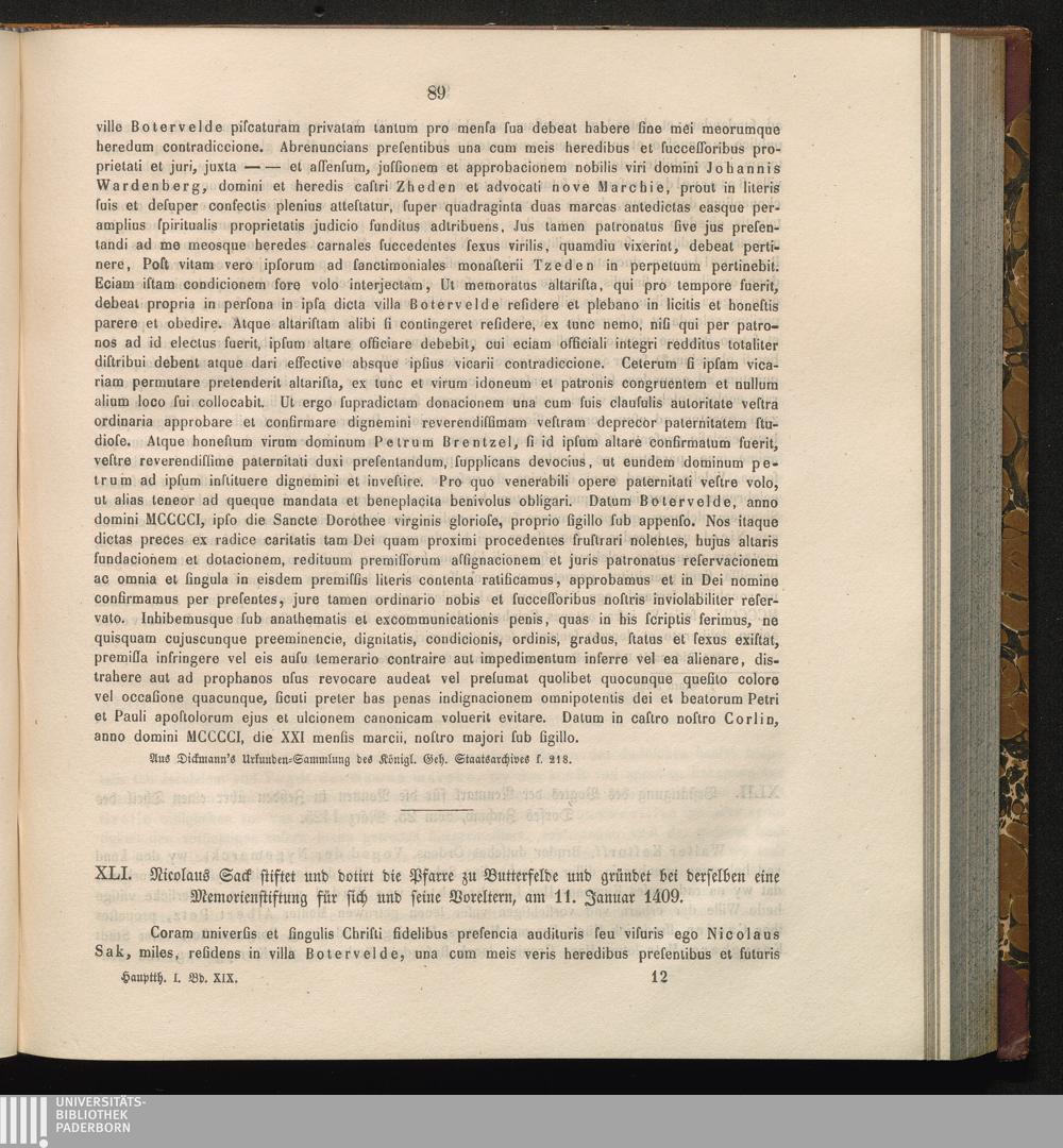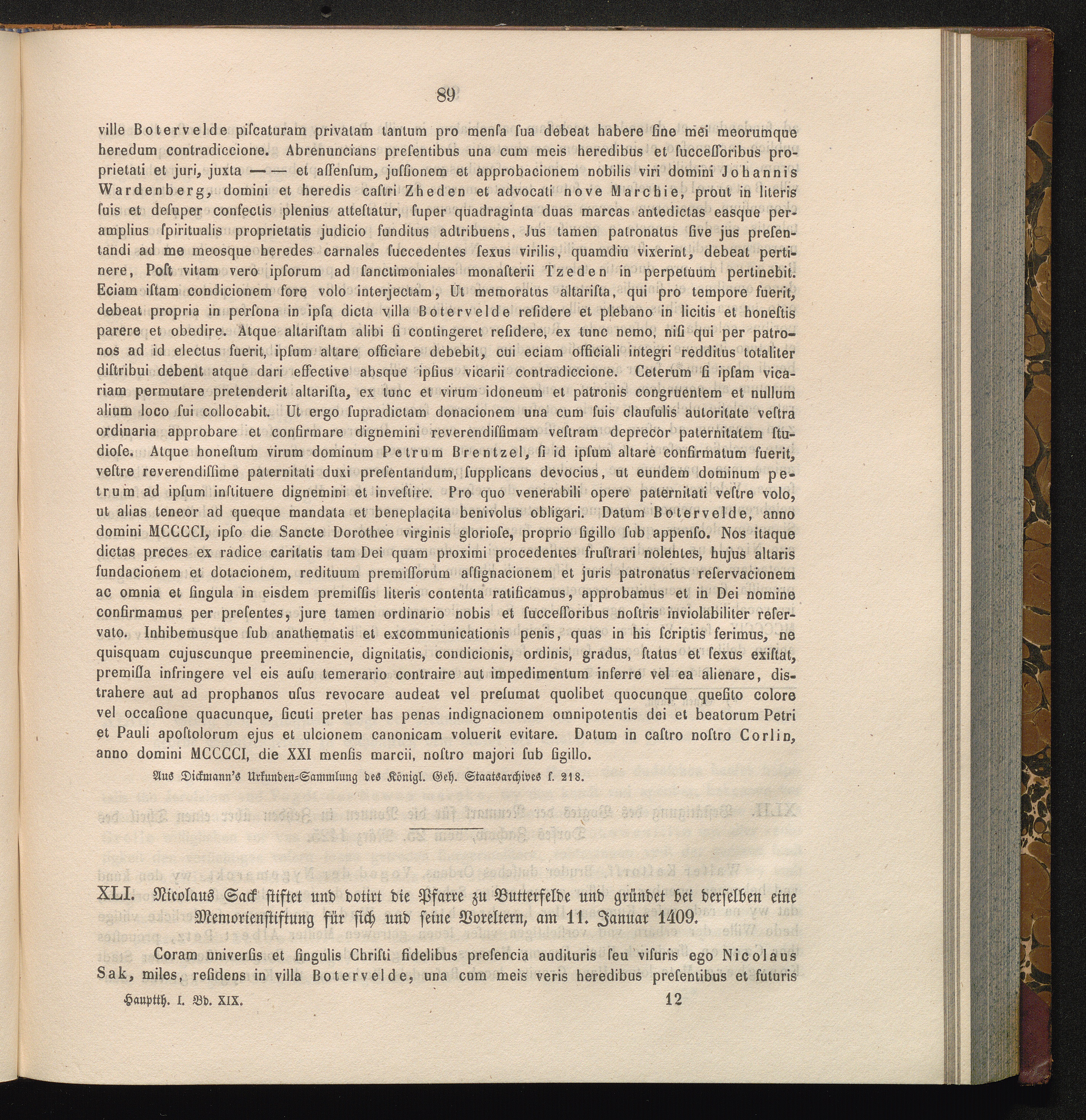 XLI. Nicolaus Sack stiftet und dotirt die Pfarre zu Butterfelde und gründet bei derselben[...]