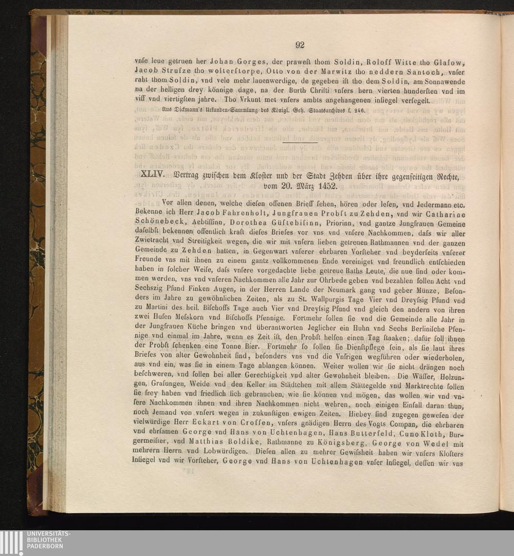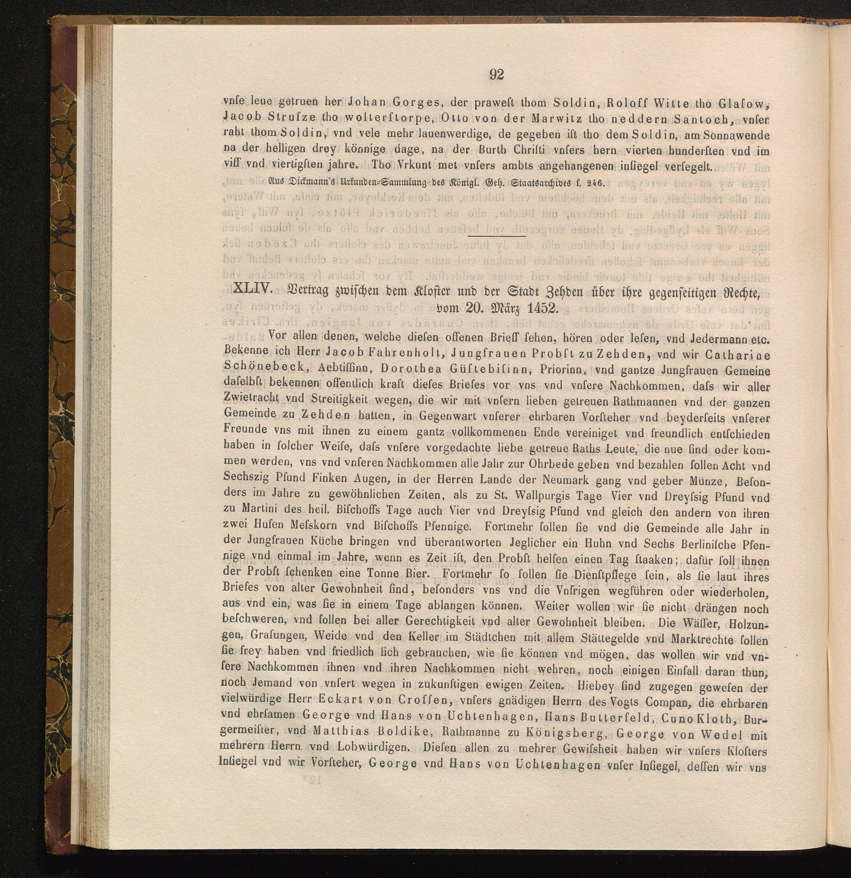 XLIV. Vertrag zwischen dem Kloster und der Stadt Zehden über ihre gegenseitigen Rechte,[...]