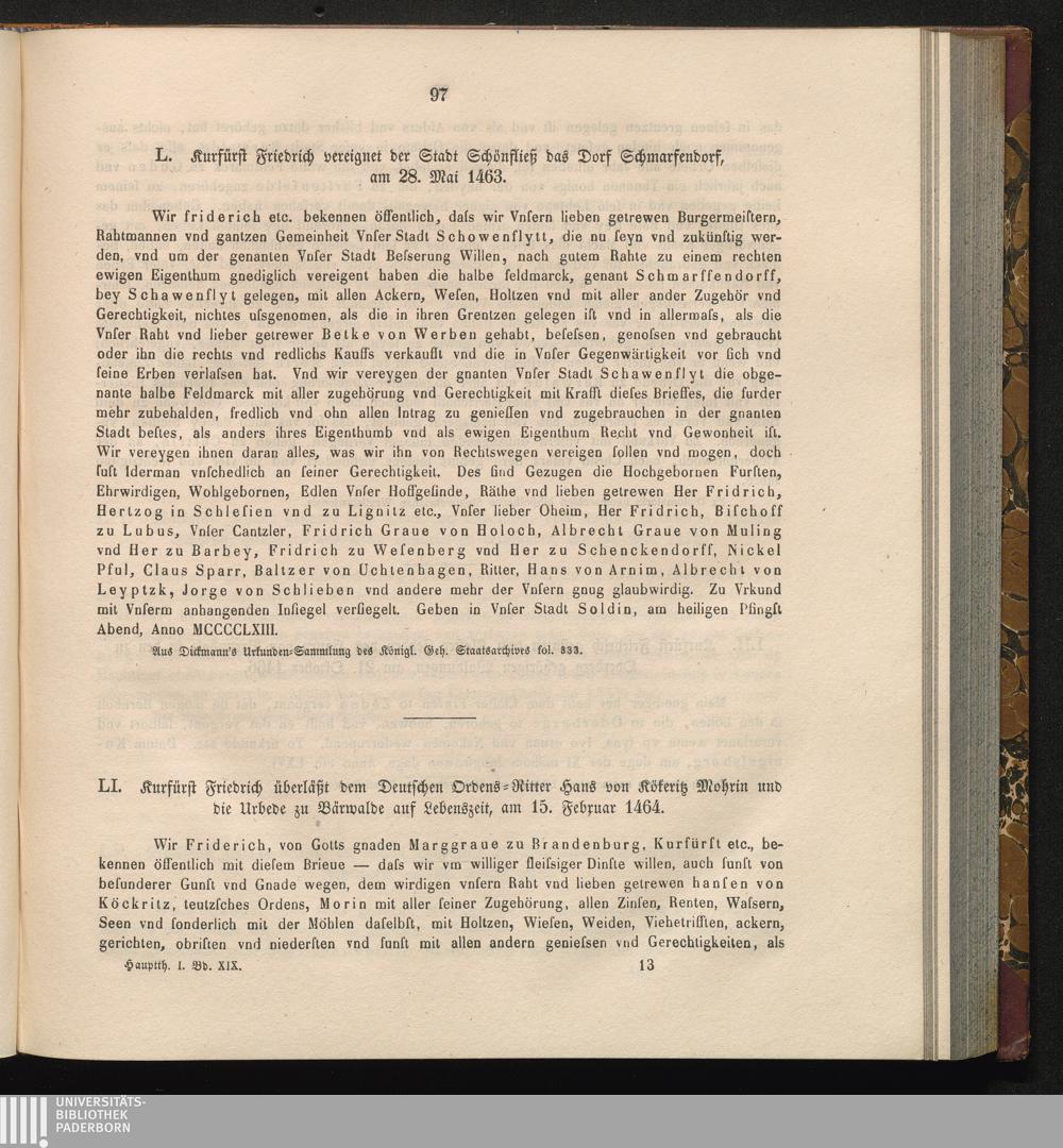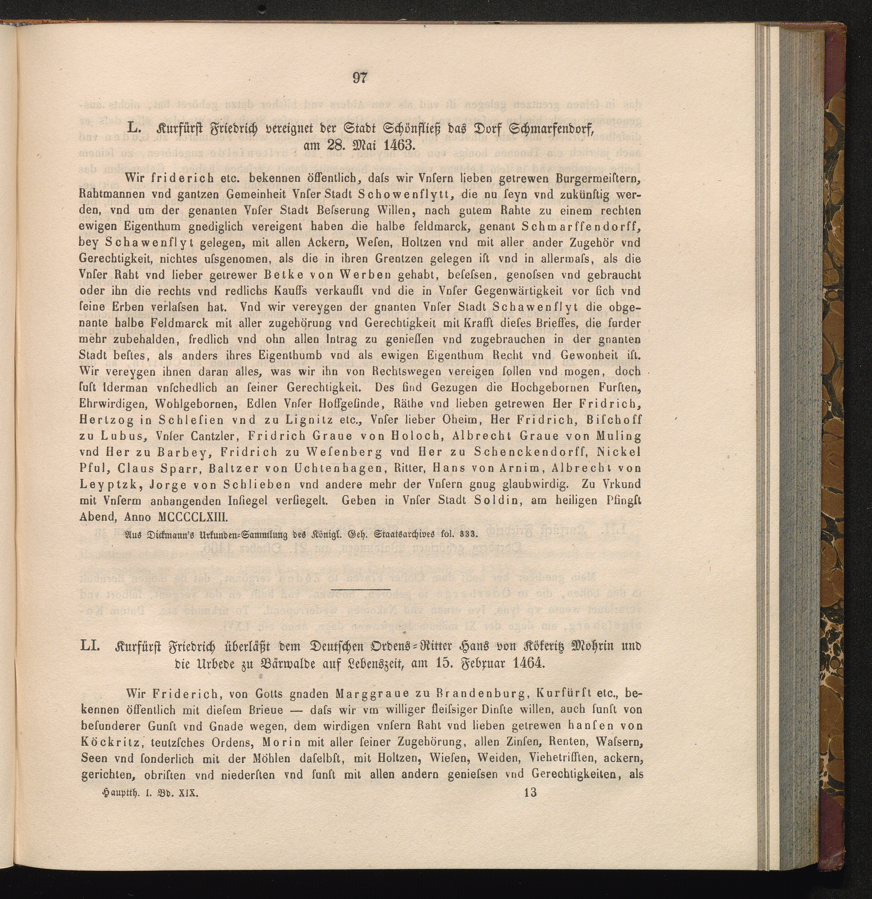 LI. Kurfürst Friedrich überläßt dem Deutschen Ordens - Ritter Hans von Kökeritz Mohrin[...]
