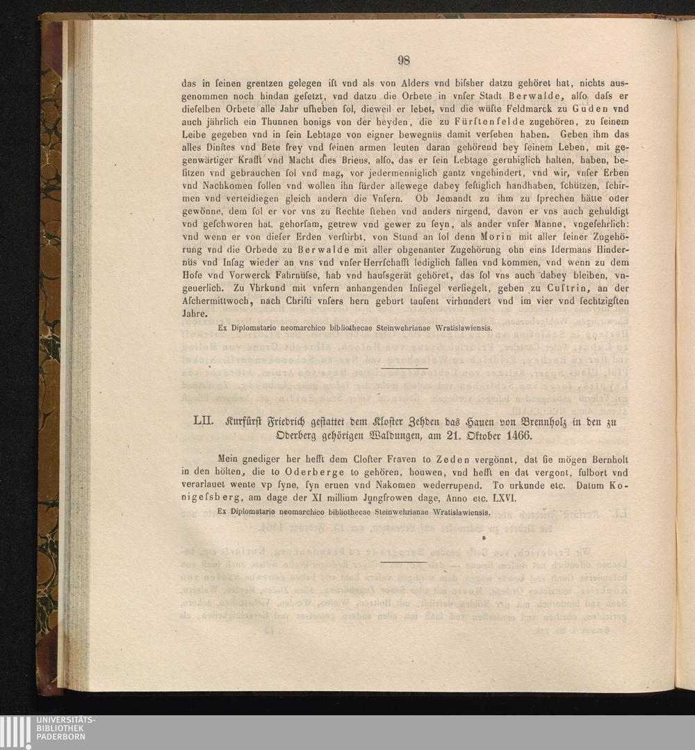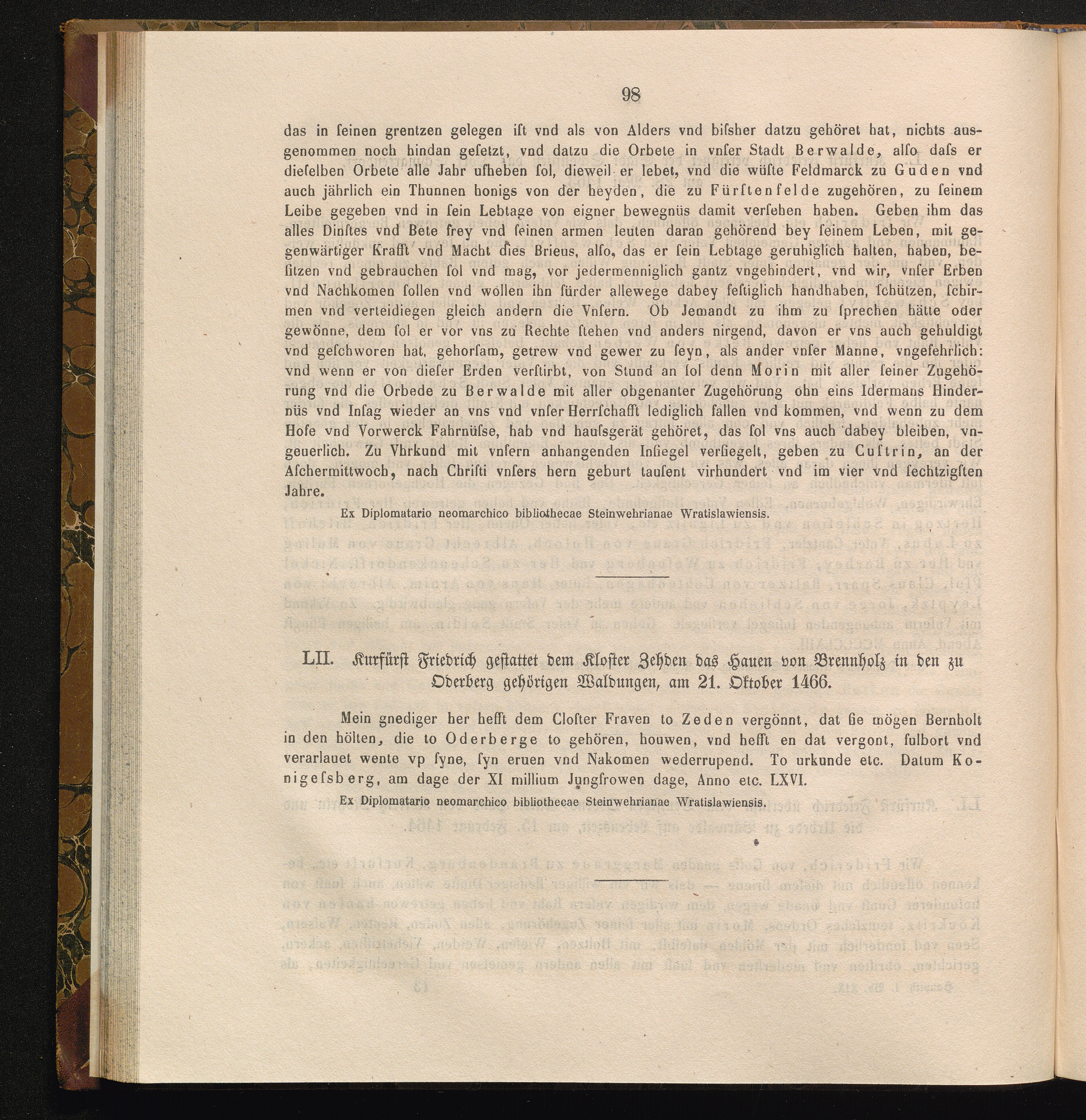 LII. Kurfürst Friedrich gestattet dem Kloster Zehden das Hauen von Brennholz in den[...]