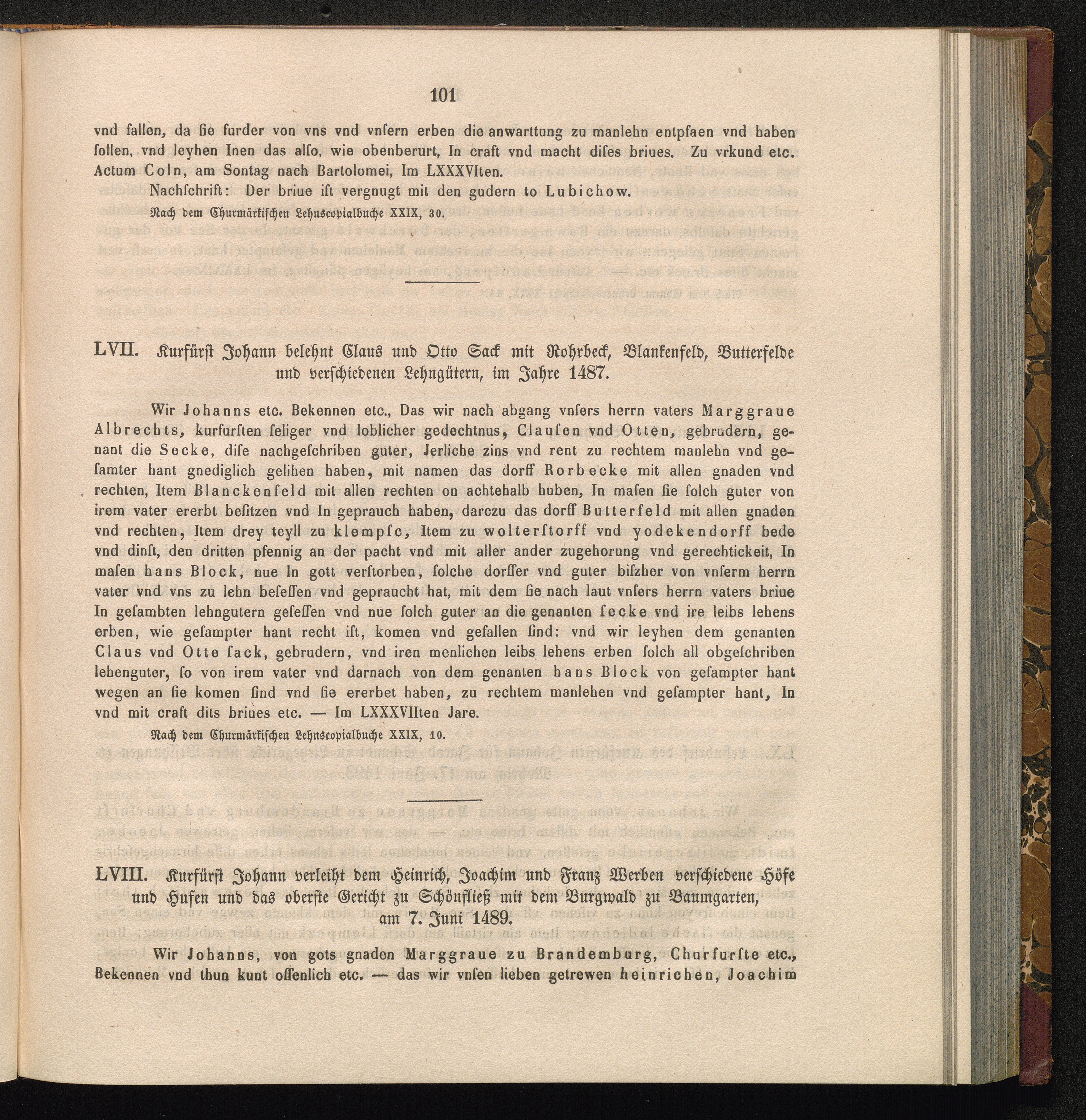 LVII. Kurfürst Johann belehnt Claus und Otto Sack mit Rohrbeck, Blankenfeld, Butterfelde[...]