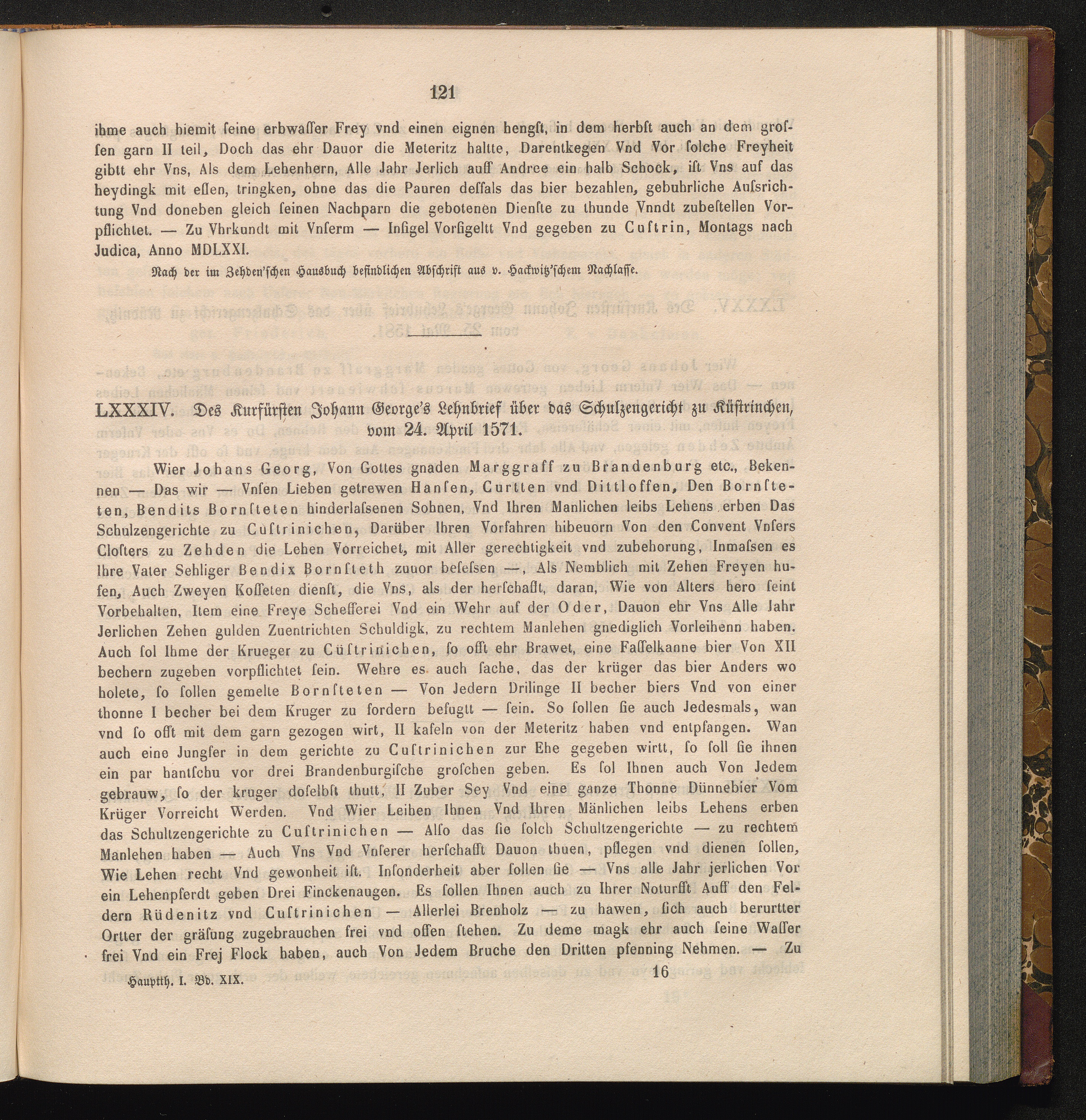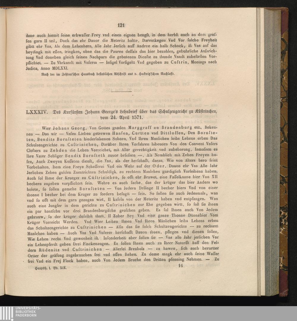 LXXXIV. Des Kurfürsten Johann George's Lehnbrief über das Schulzengericht zu Küstrinchen,[...]