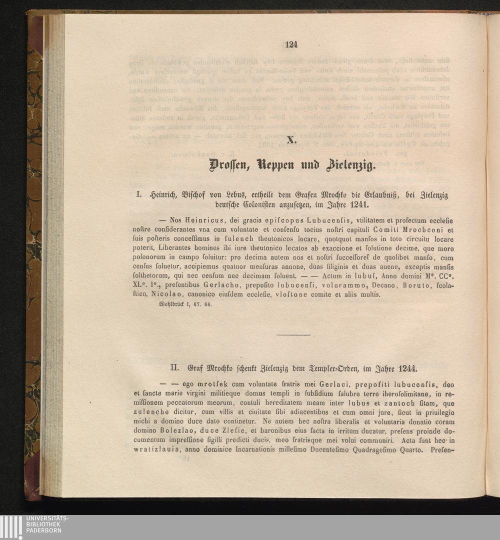 I. Heinrich, Bischof von Lebus, ertheilt dem Grafen Mrochko die Erlaubniß, bei Zielenzig[...]