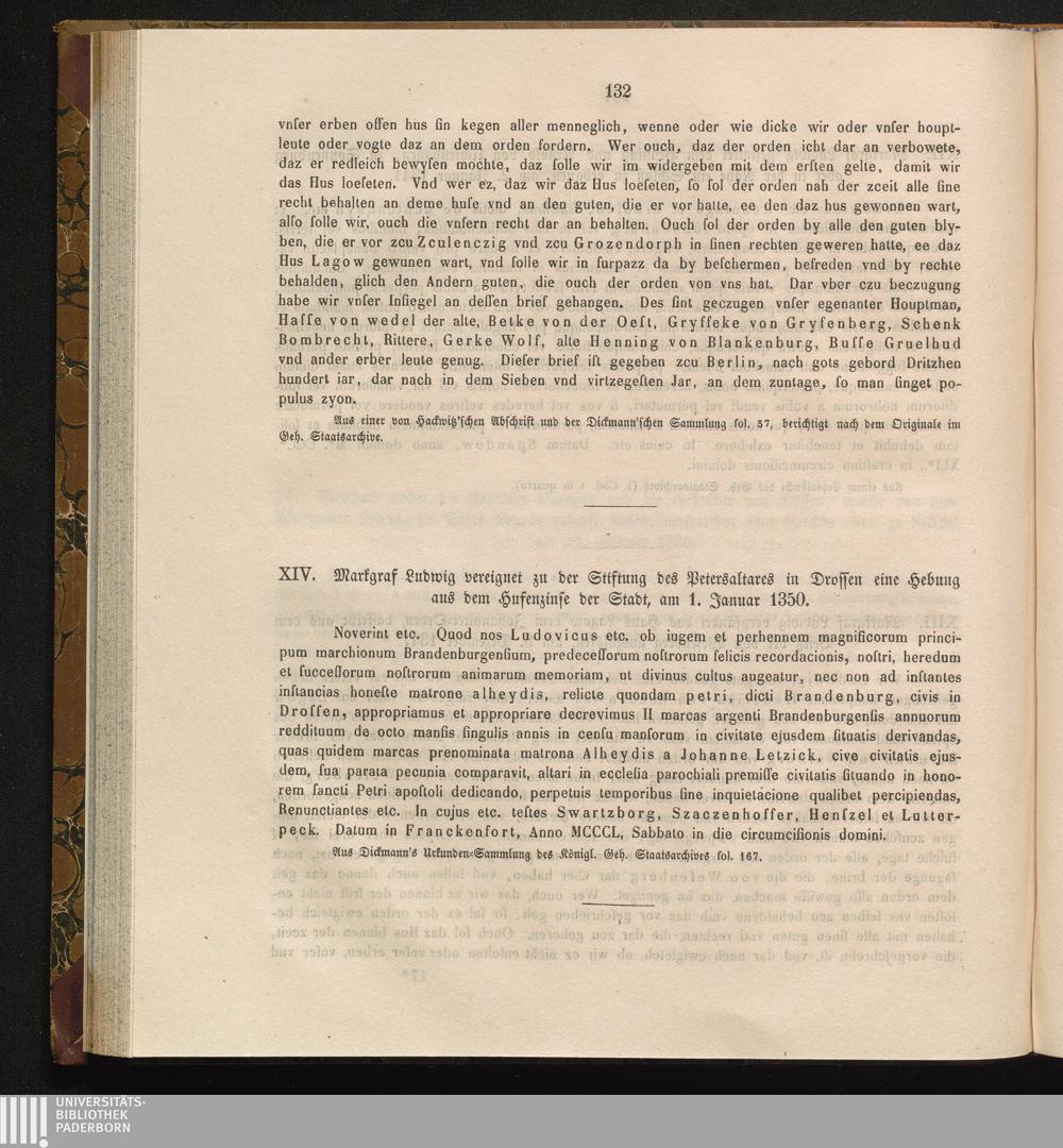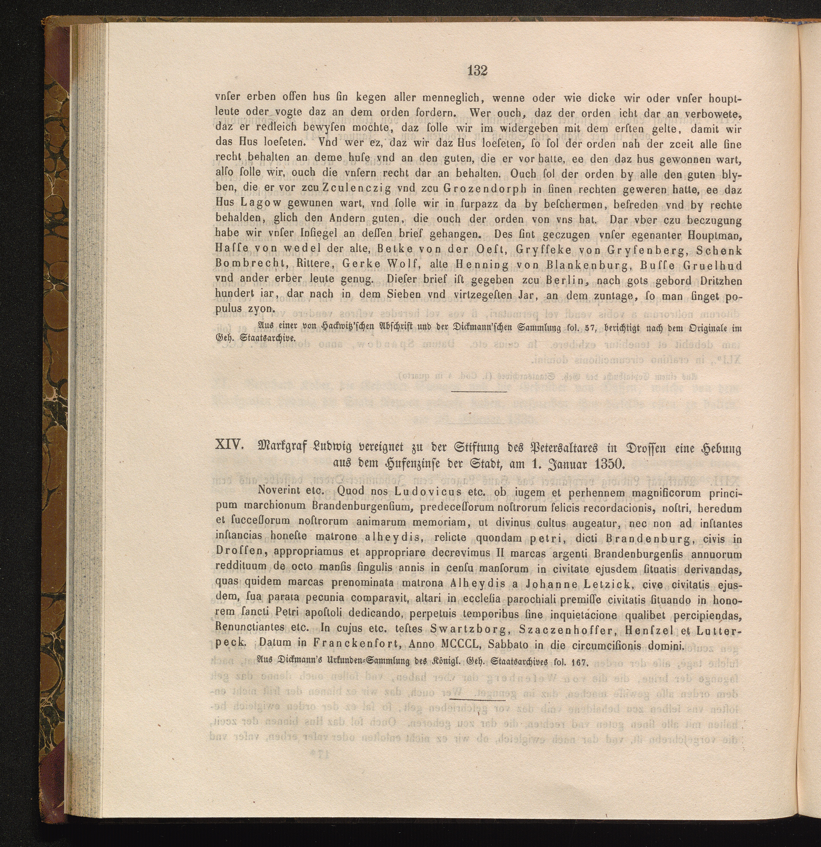 XIV. Markgraf Ludwig vereignet zu der Stiftung des Petersaltares in Drossen eine[...]