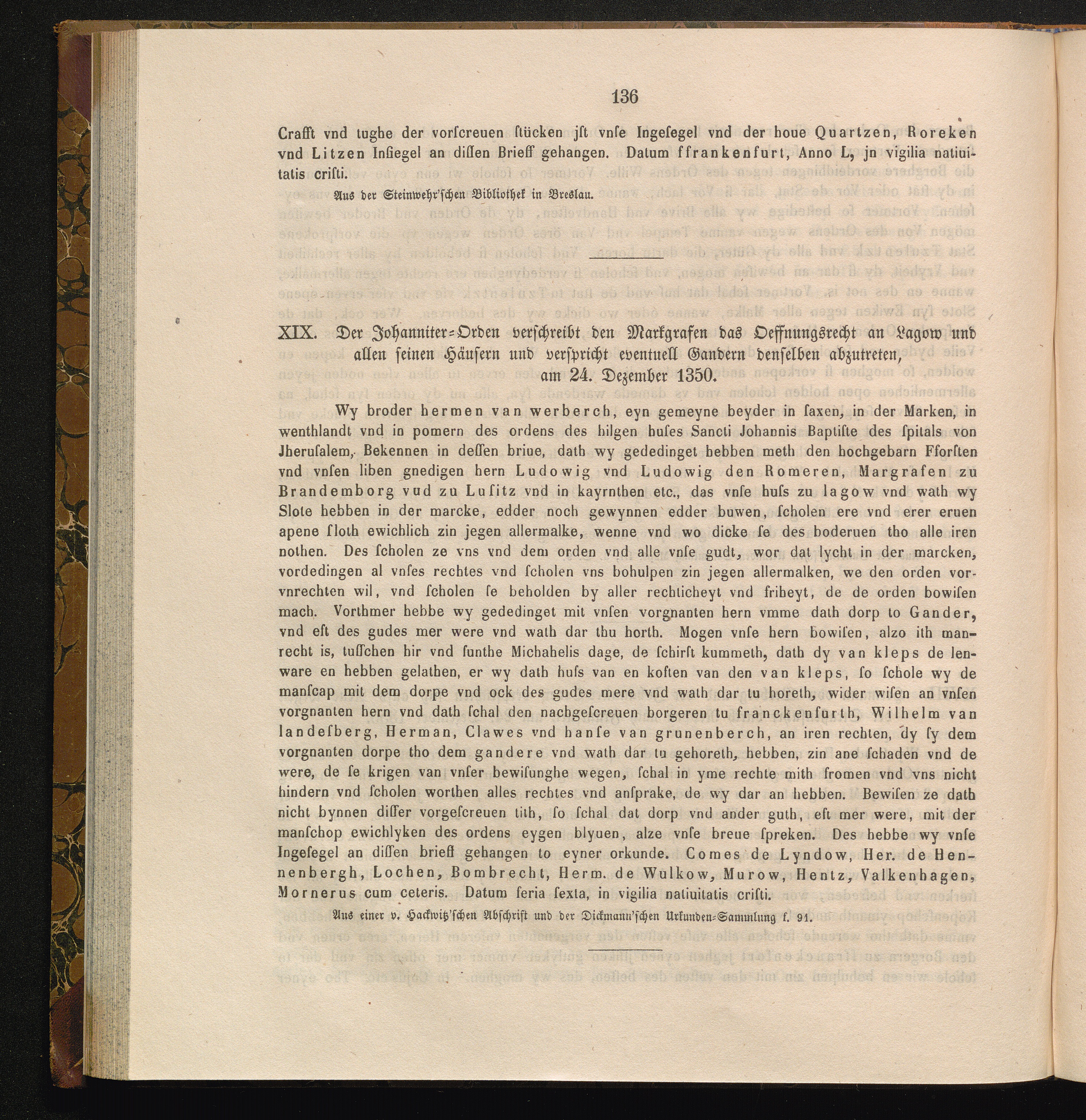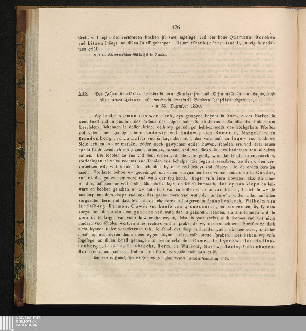 XIX. Der Johanniter - Orden verschreibt den Markgrafen das Oeffnungsrecht an Lagow[...]