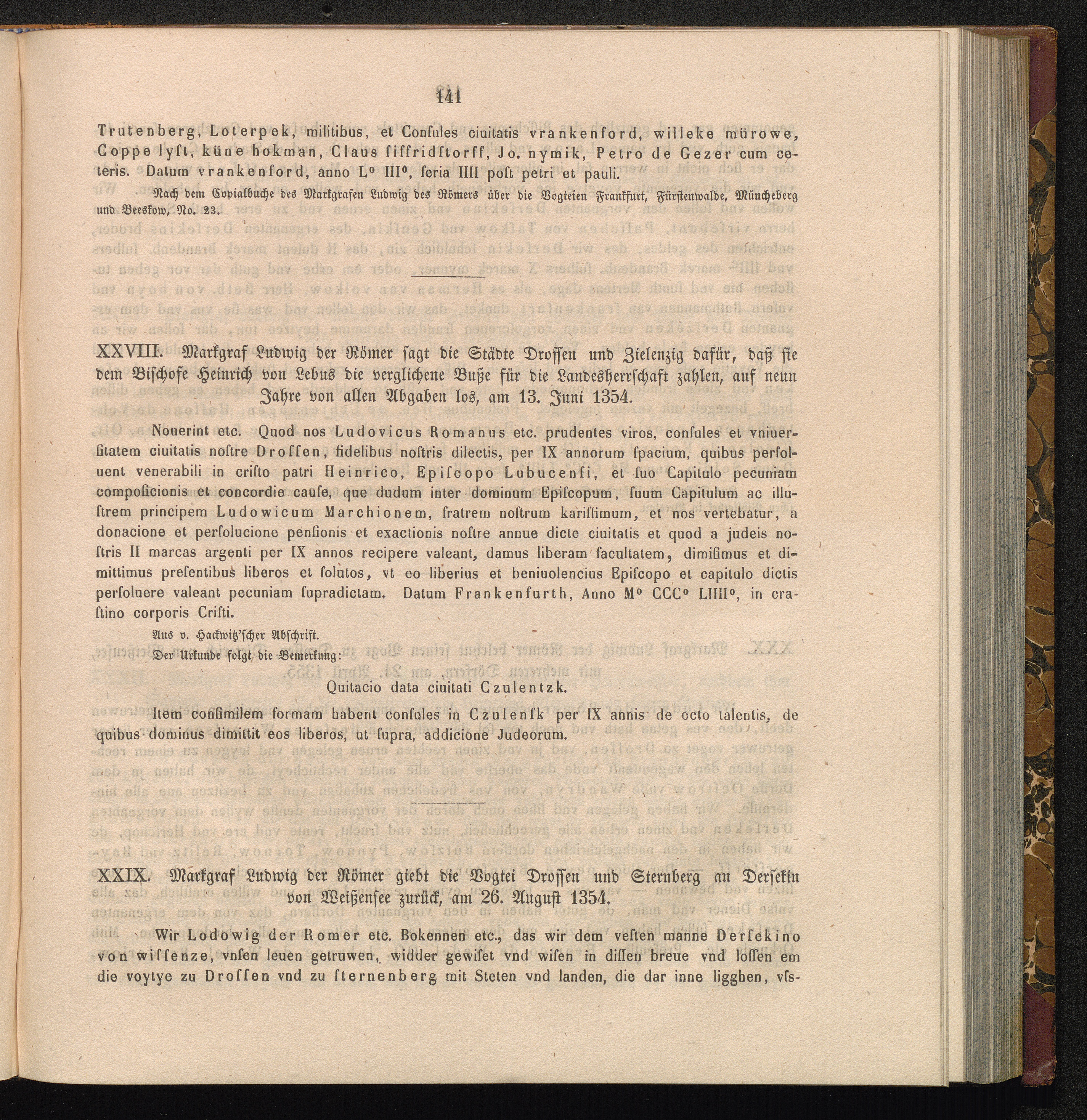 XXVIII. Markgraf Ludwig der Römer sagt die Städte Drossen und Zielenzig dafür, daß[...]