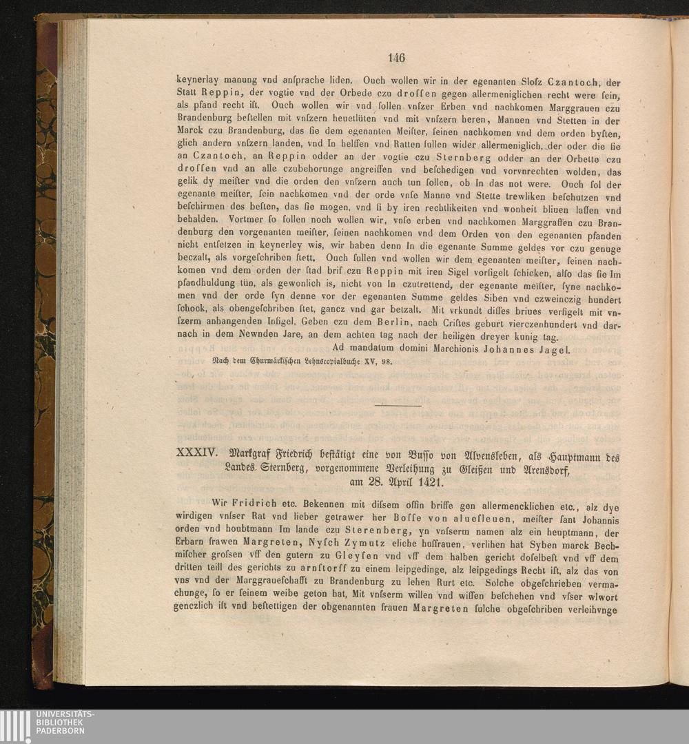 XXXIV. Markgraf Friedrich bestätigt eine von Busso von Alvensleben, als Hauptmann[...]