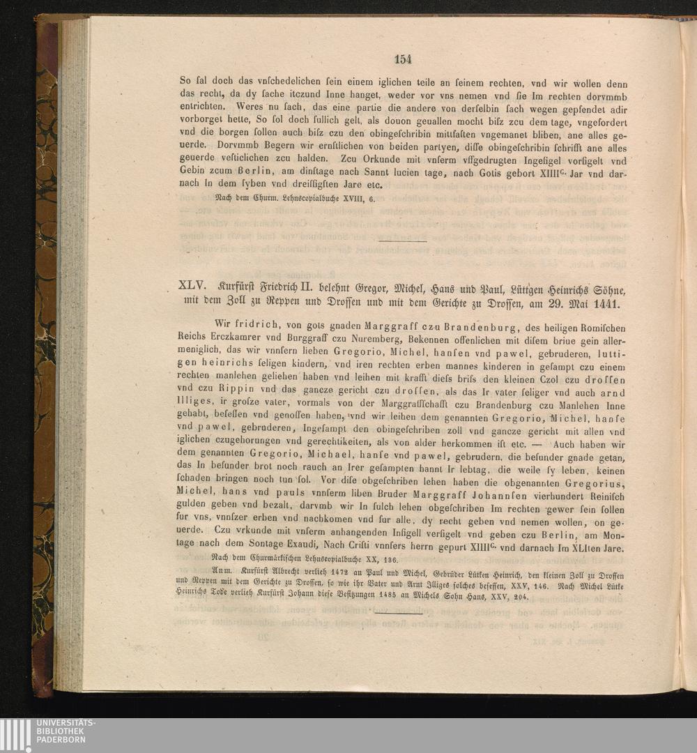 XLV. Kurfürst Friedrich II. belehnt Gregor, Michel, Hans und Paul, Lüttgen Heinrichs[...]
