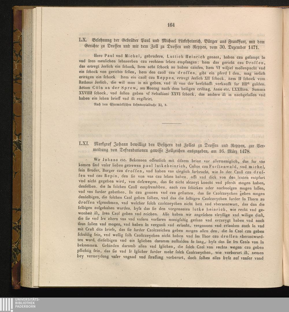 LX. Belehnung der Gebrüder Paul und Michael Lütkeheinrich, Bürger aus Frankfurt,[...]