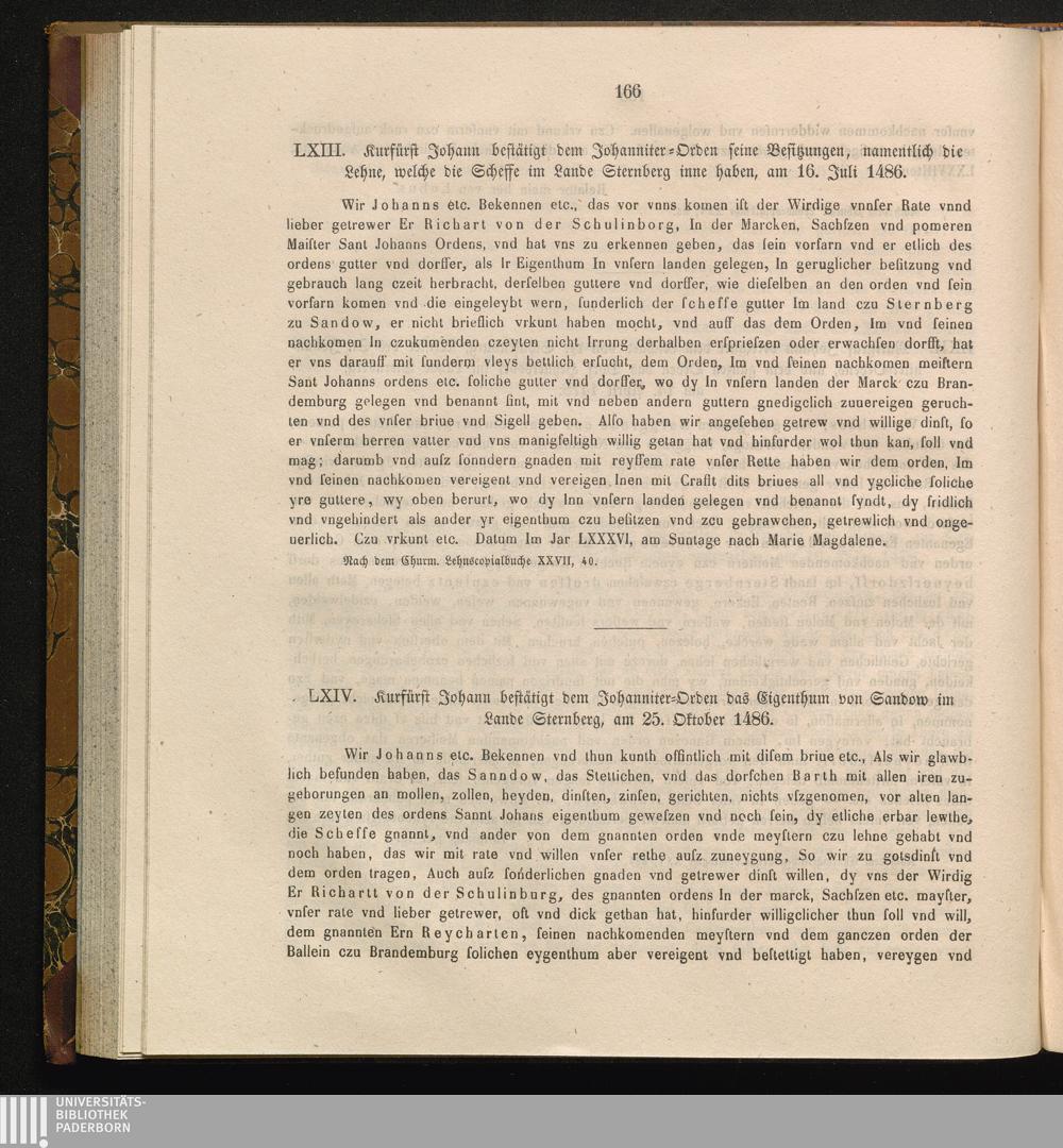 LXIII. Kurfürst Johann bestätigt dem Johanniter - Orden seine Besitzungen, namentlich[...]