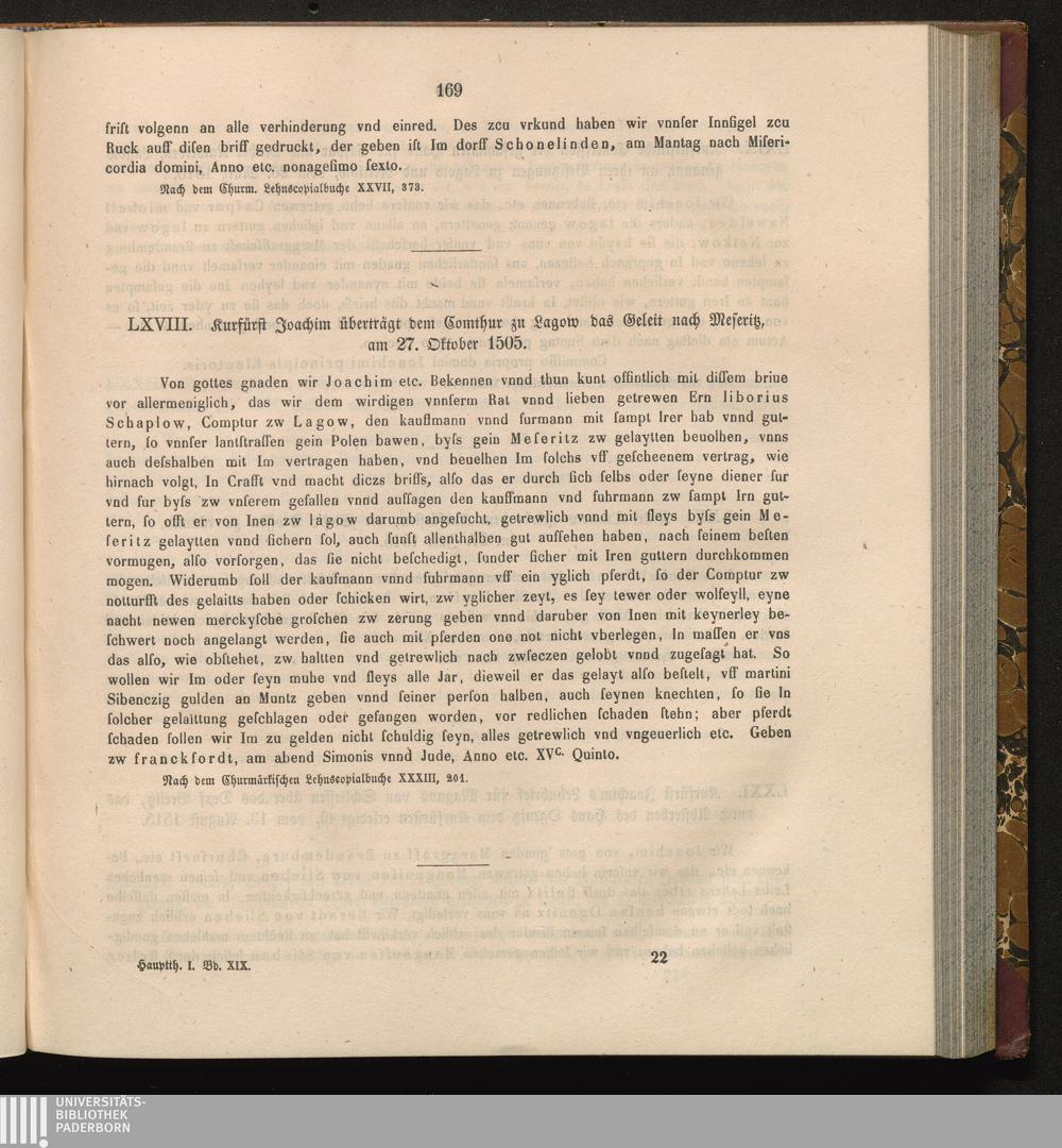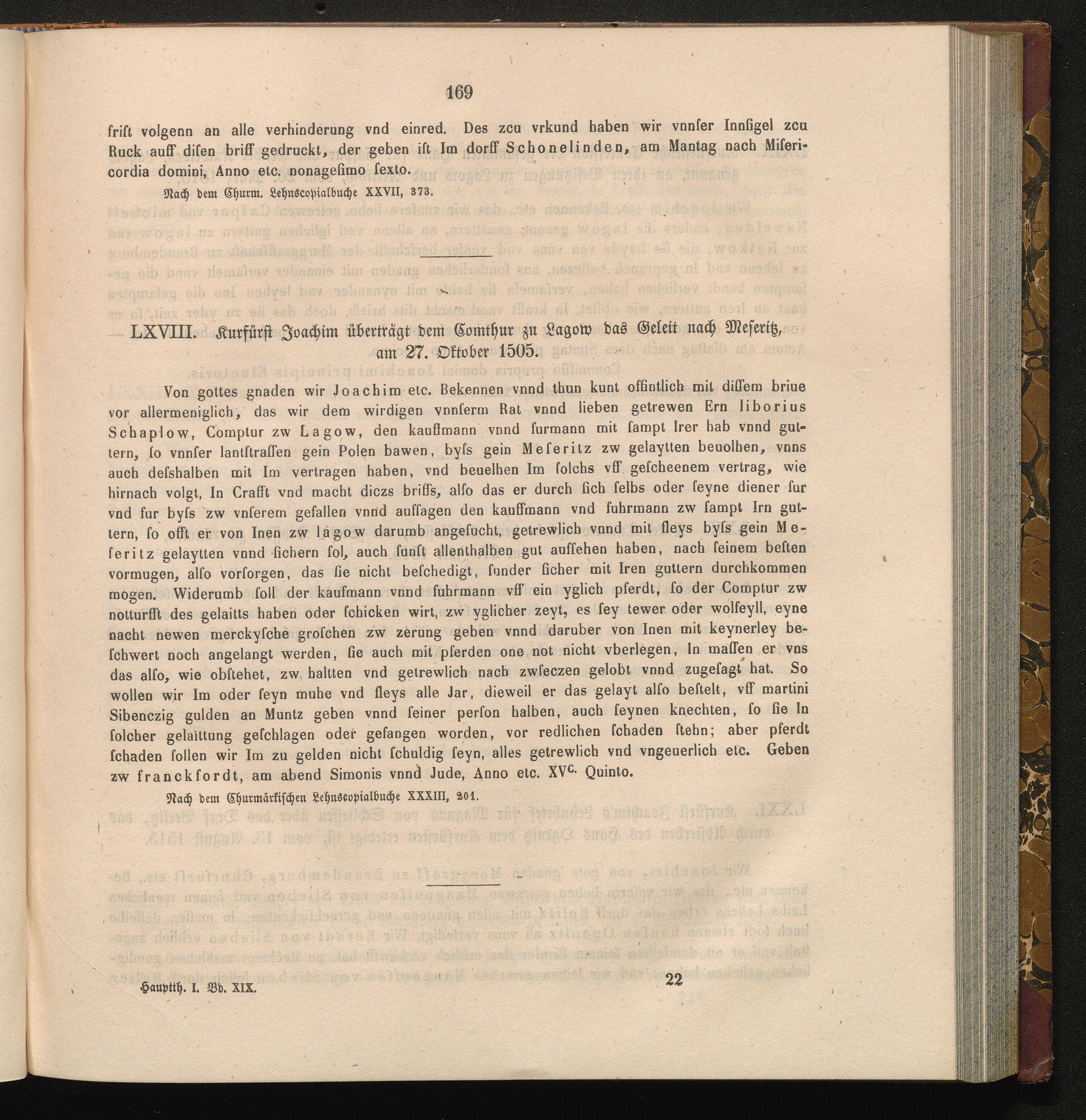 LXVIII. Kurfürst Joachim überträgt dem Comthur zu Lagow das Geleit nach Meseritz,[...]