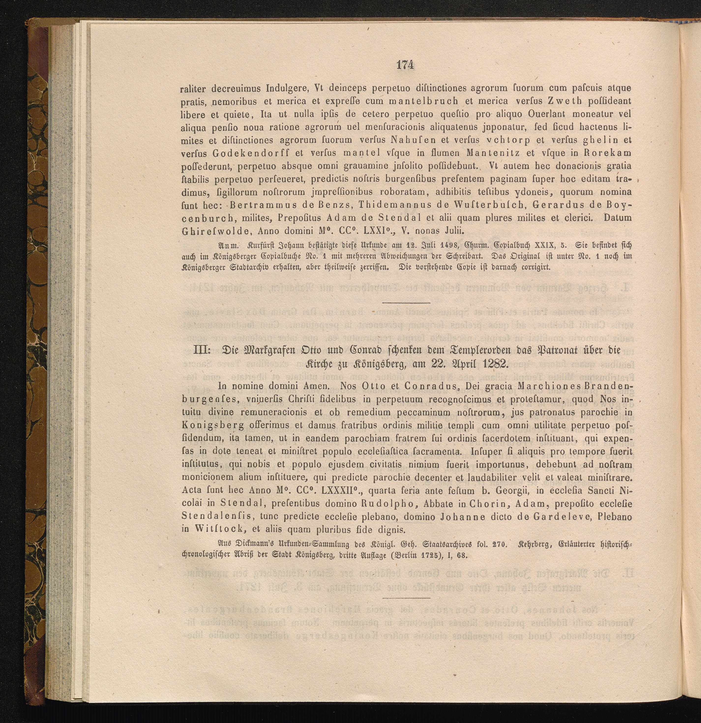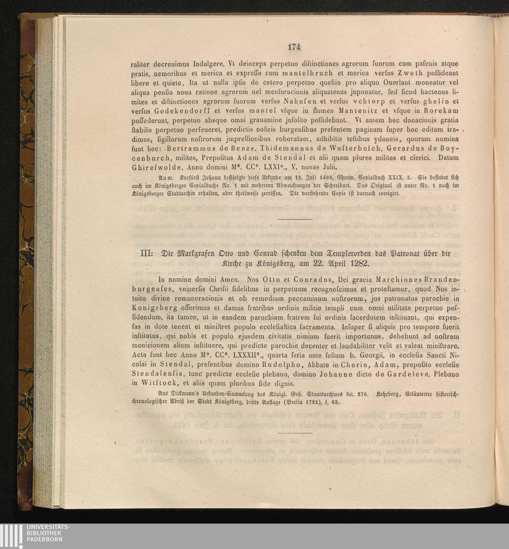 III: Die Markgrafen Otto und Conrad schenken dem Templerorden das Patronat über die[...]